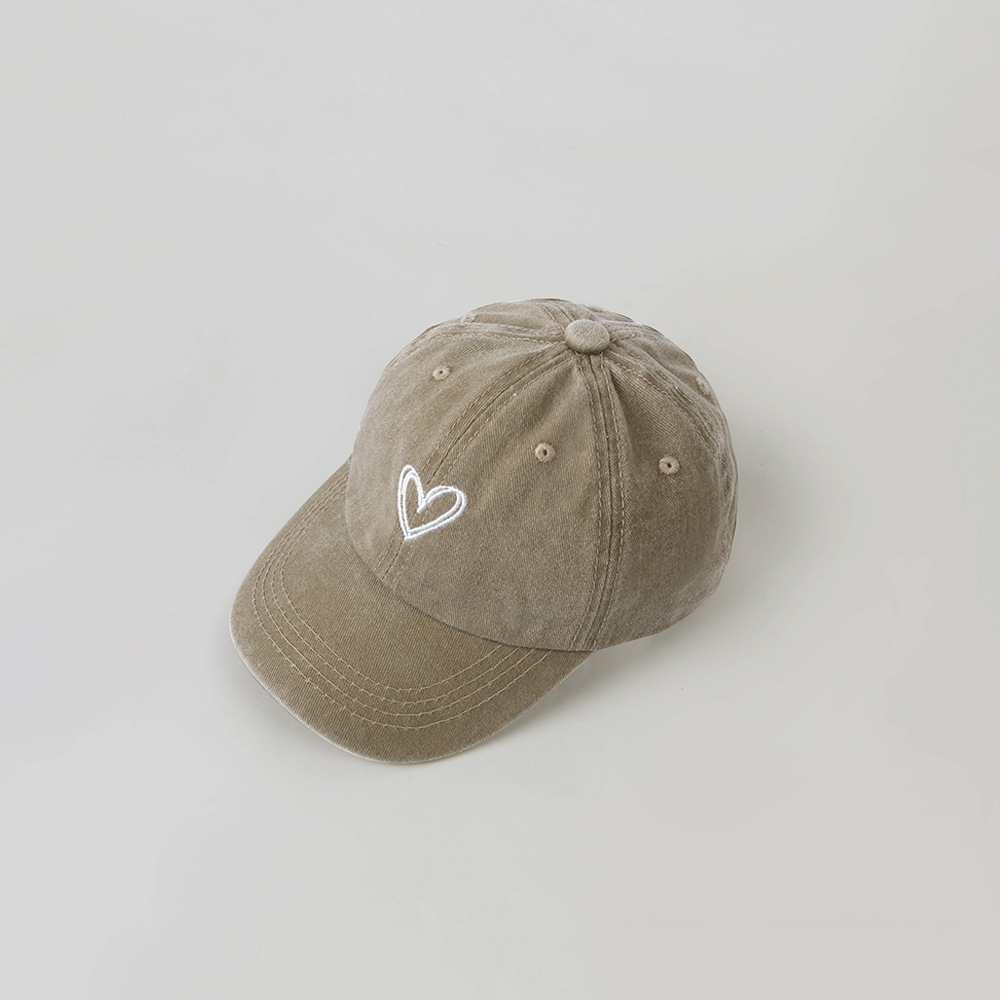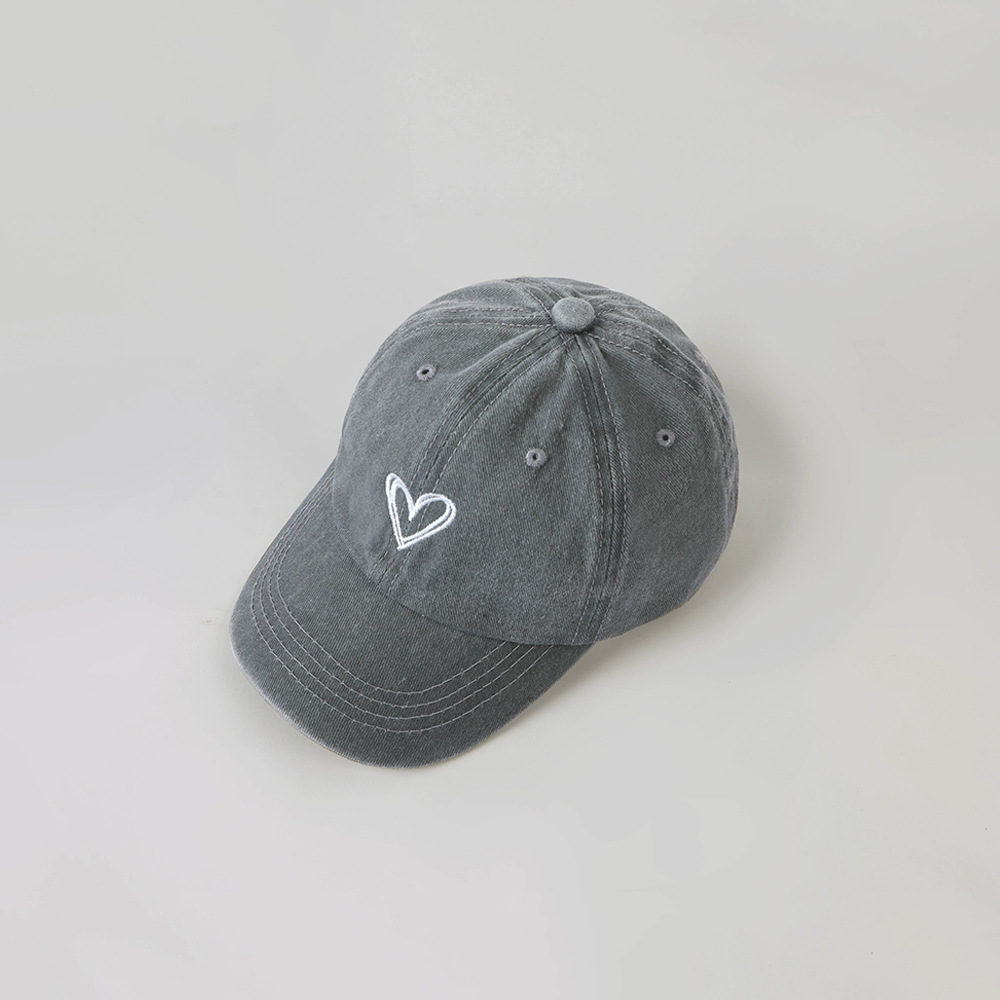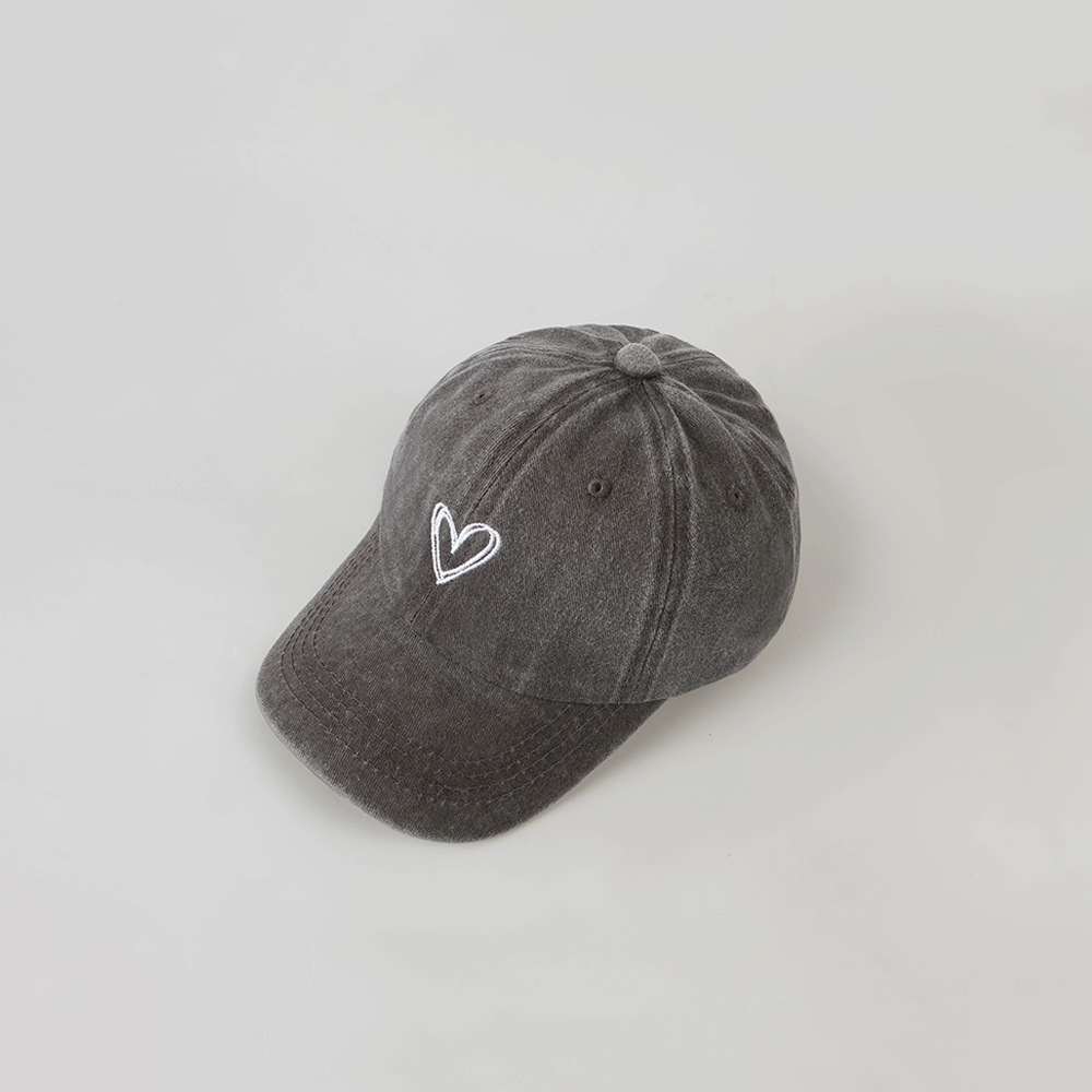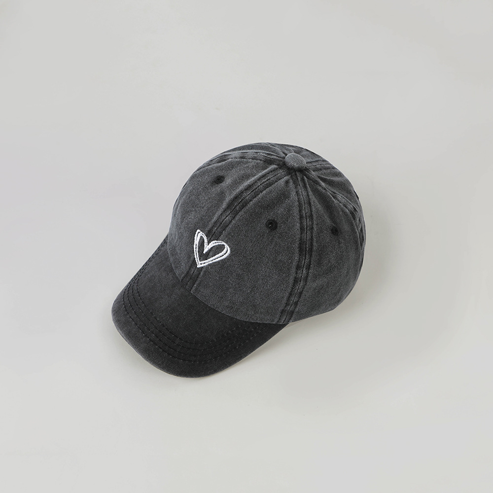 한국 스타일 Ins 세탁 데님 빈티지 어린이 모자 라인 사랑 자수 단순 성격 고민 야구 모자