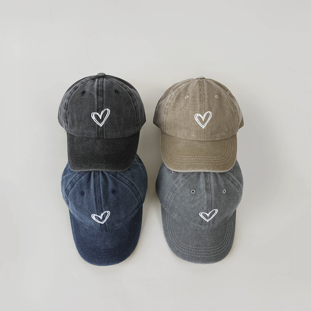 한국 스타일 Ins 세탁 데님 빈티지 어린이 모자 라인 사랑 자수 단순 성격 고민 야구 모자스토어 가기