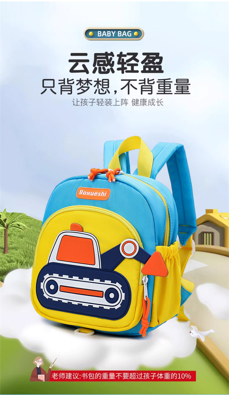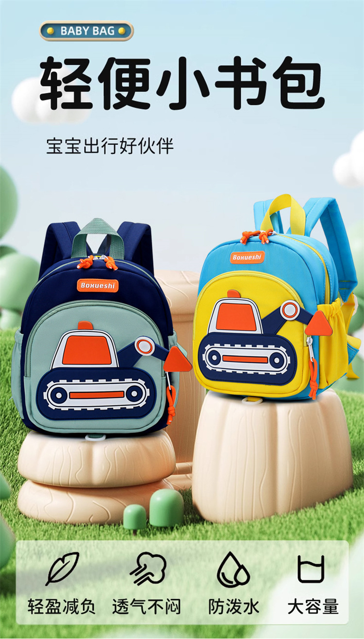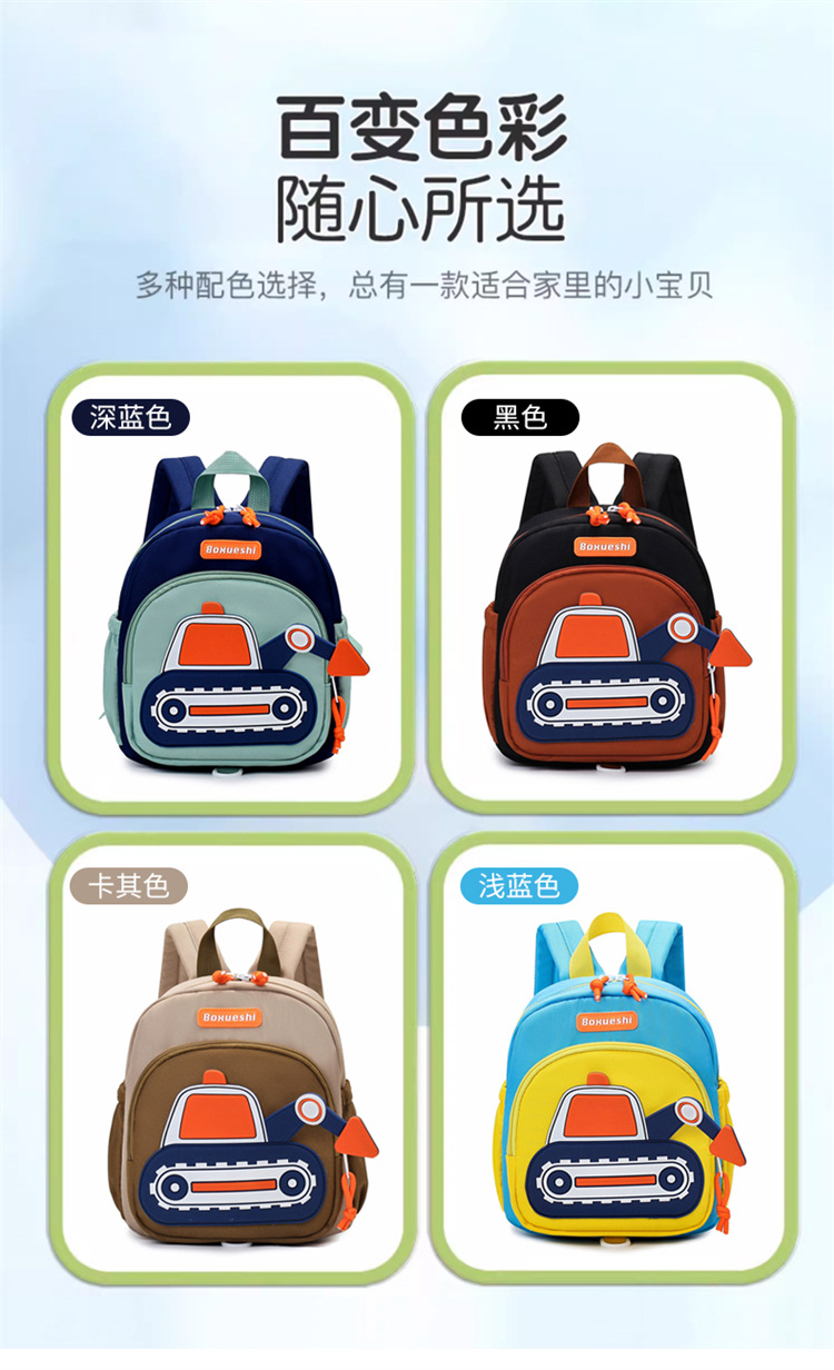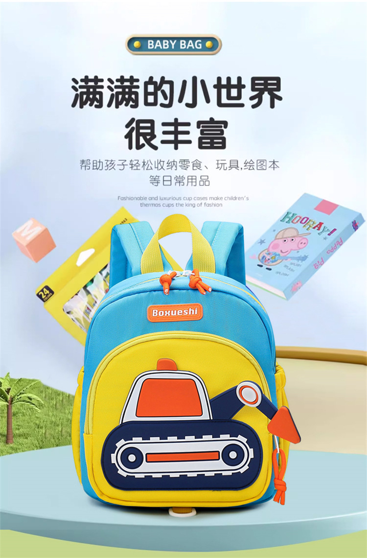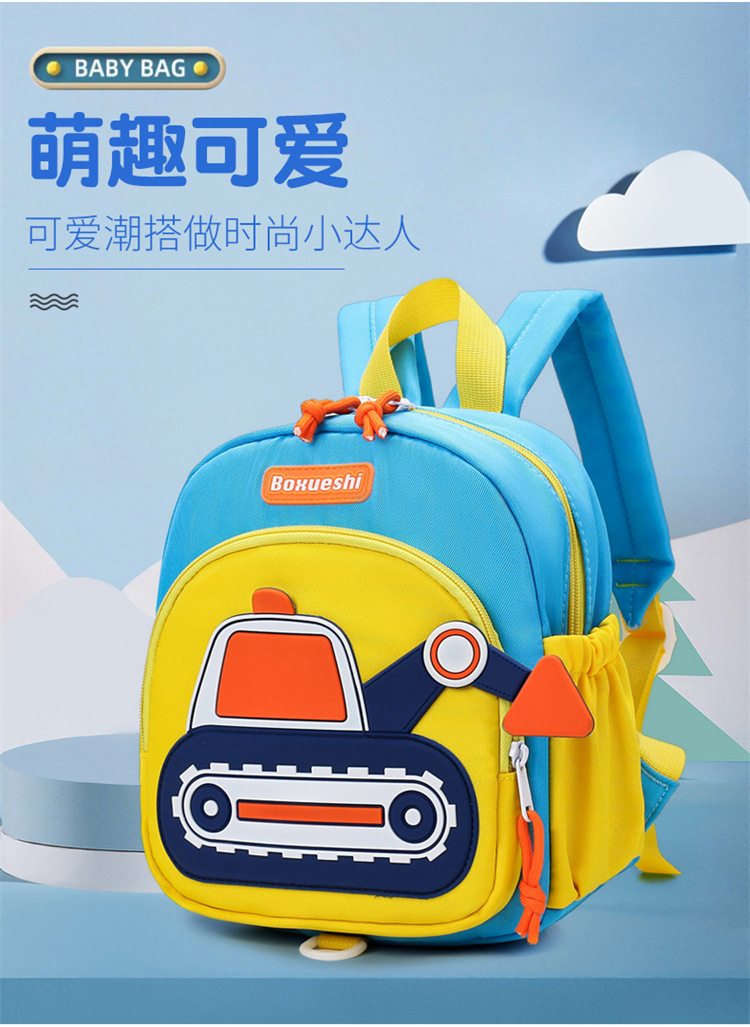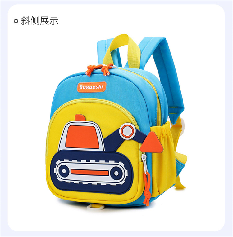 새로운 귀여운 유치원 학교 가방 어린이 견인 로프 분실 방지 배낭 귀여운 만화 굴삭기 작은 배낭스토어 가기