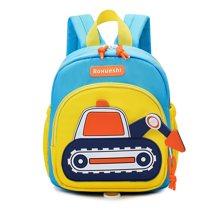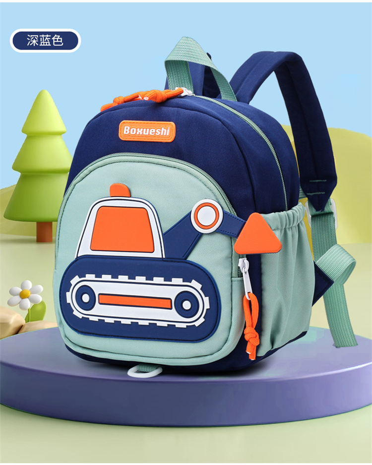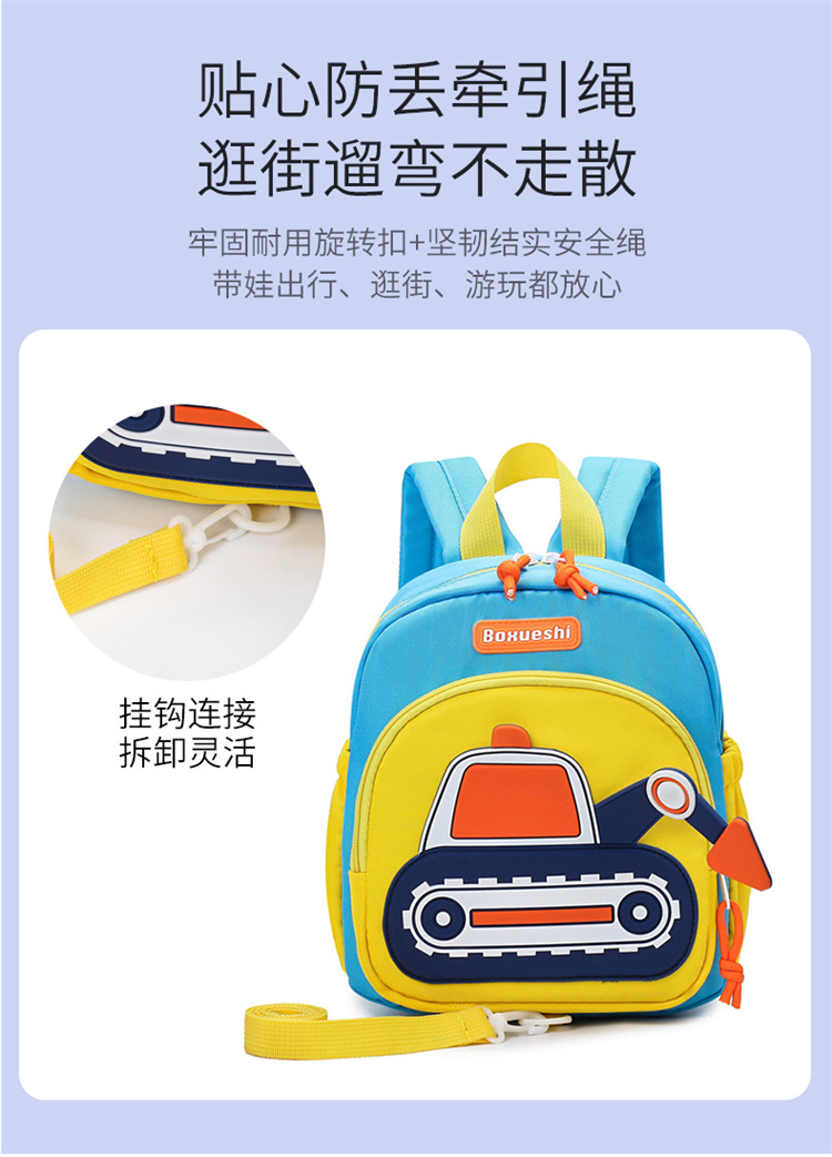 새로운 귀여운 유치원 학교 가방 어린이 견인 로프 분실 방지 배낭 귀여운 만화 굴삭기 작은 배낭
