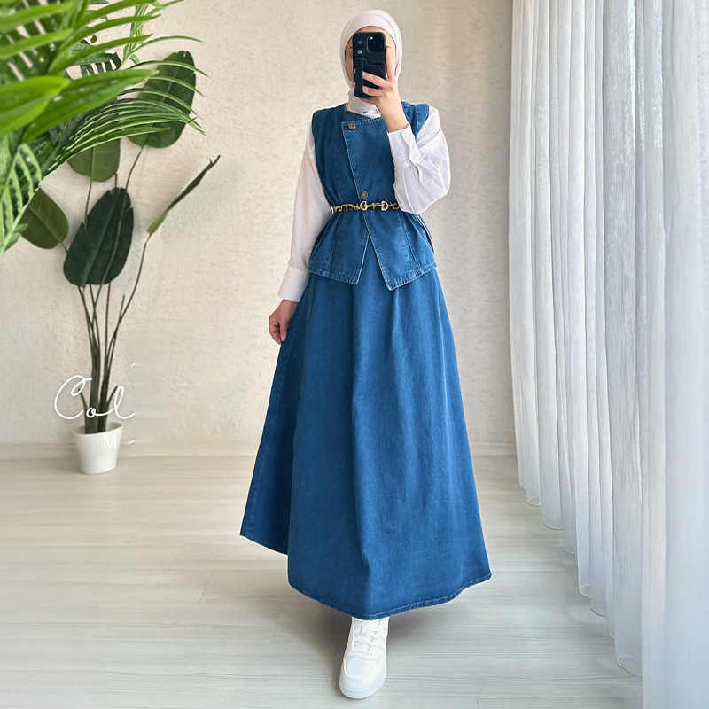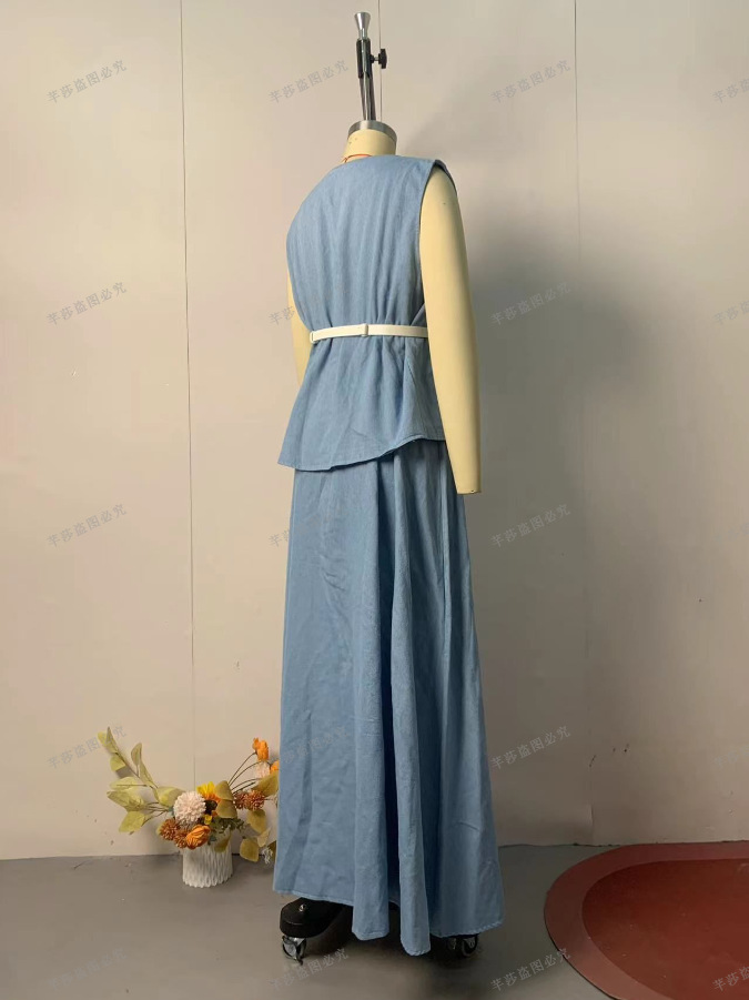 2025 유럽과 미국 아마존 국경 대외 무역 새로운 여성 기질 캐주얼 셔츠 민소매 원피스 데님 세트