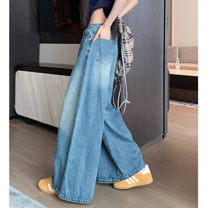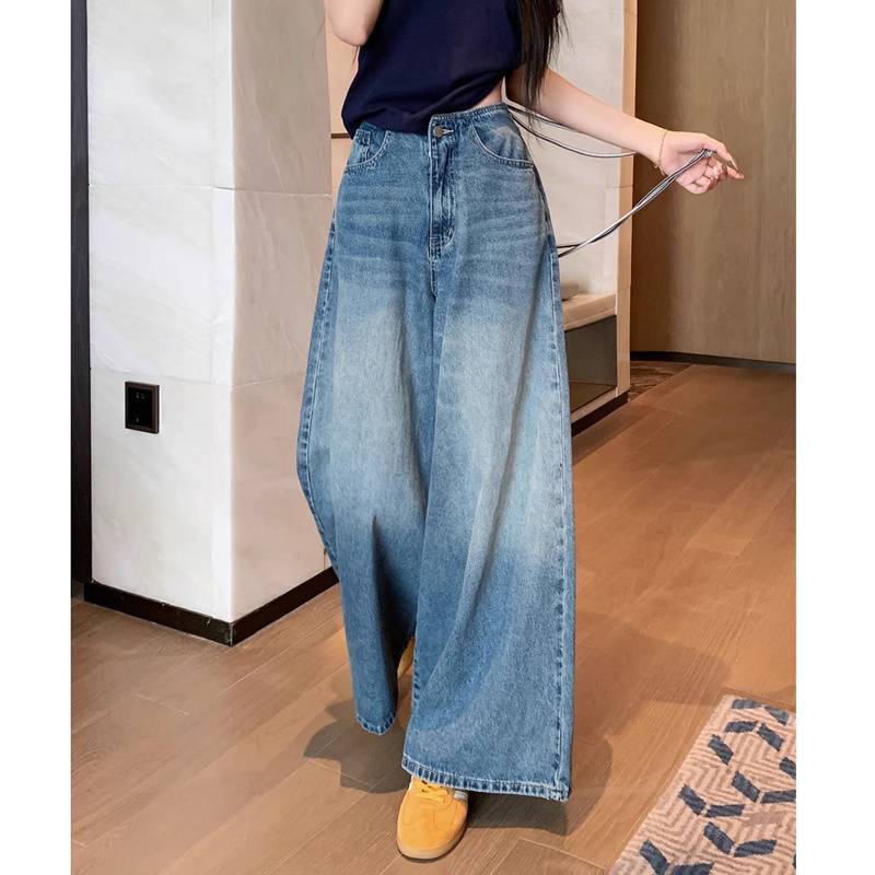 빈티지 고민 높은 허리 넓은 다리 청바지 여성의 뜨거운 소녀 짧은 느슨한 슬리밍 스트레이트 팬츠 드레이프 바지스토어 가기