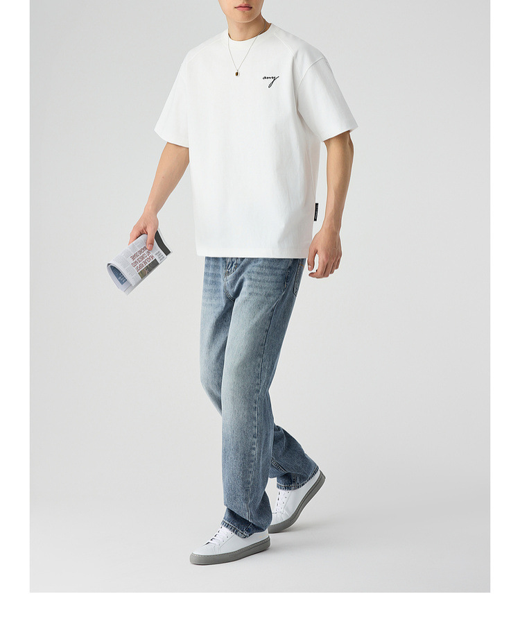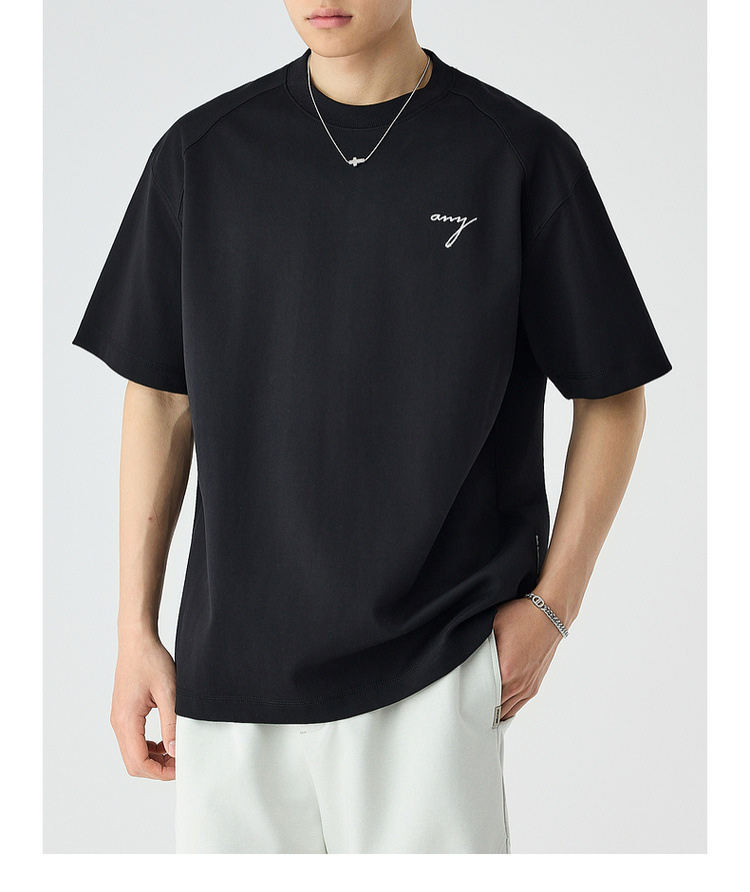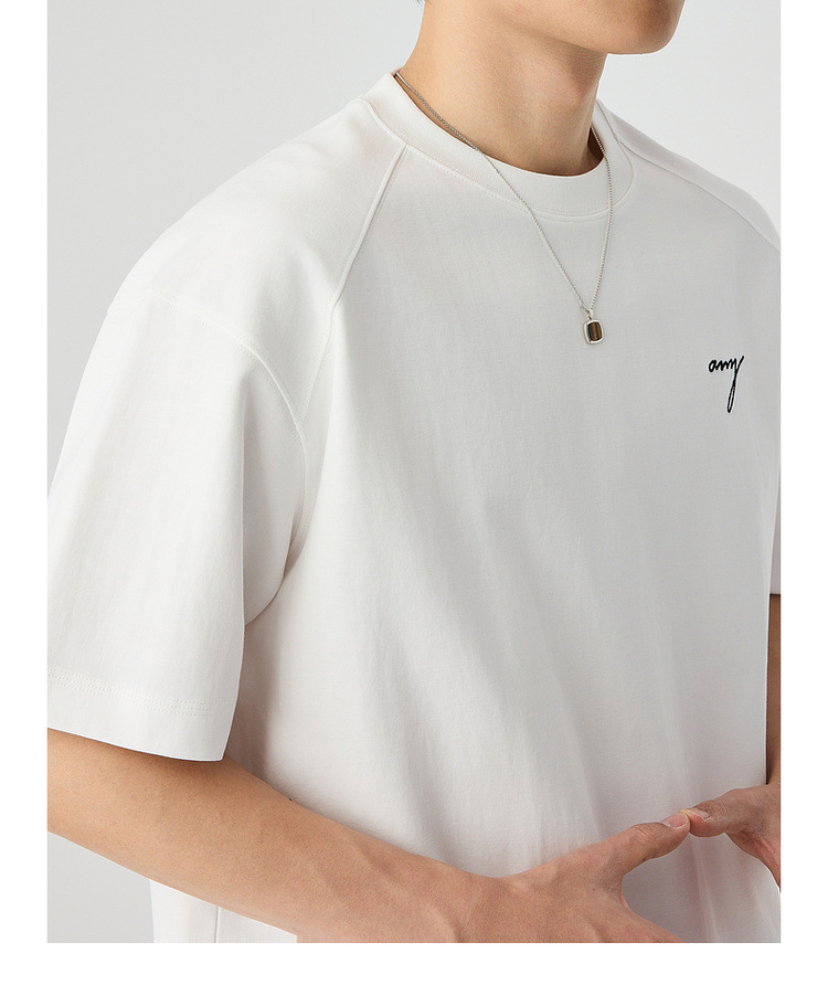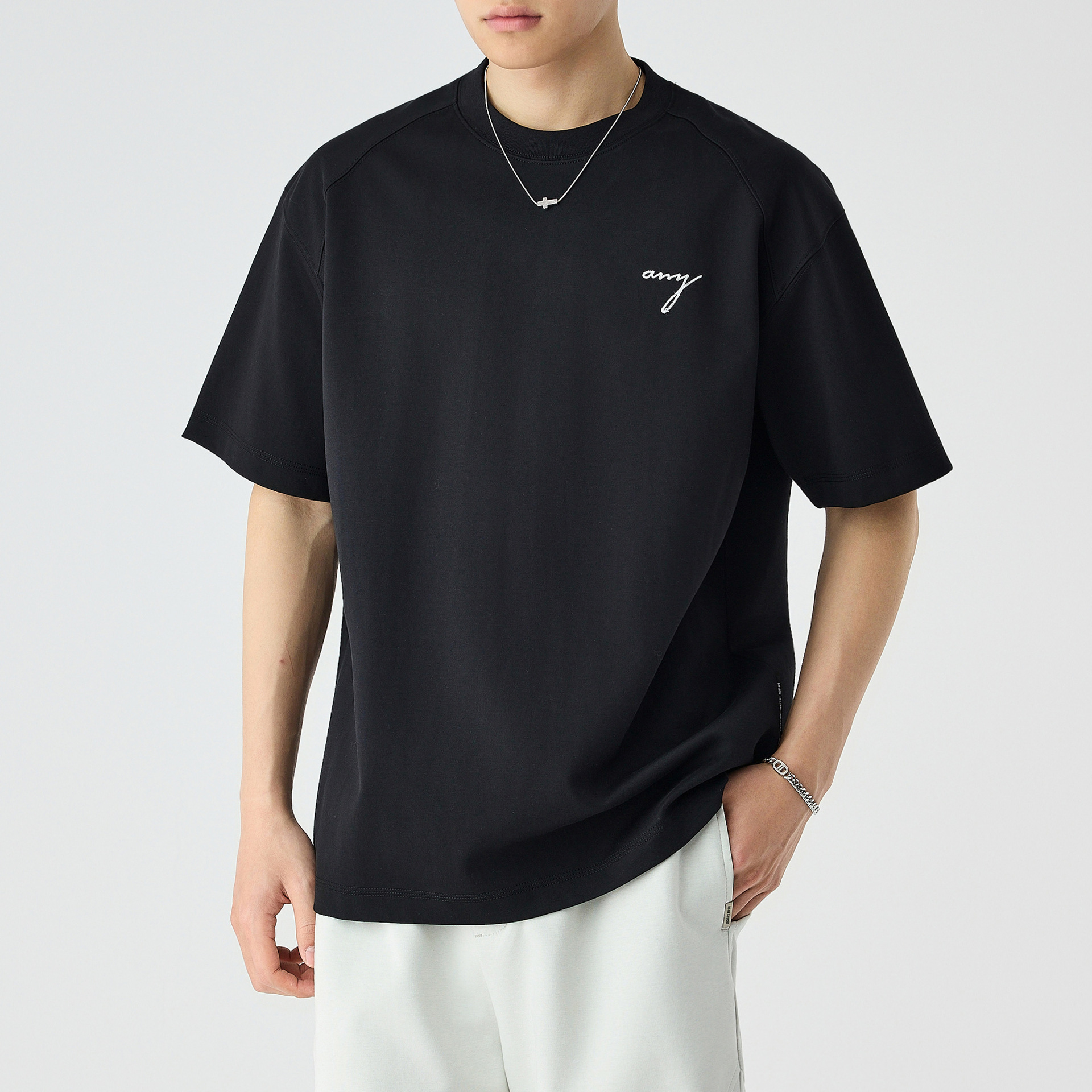 Mo Maike 남자 290g 헤비 크루 넥 쇼트 슬리브 남자 2025 년 여름 새 편지 자수 남성 티셔츠 71866.스토어 가기
