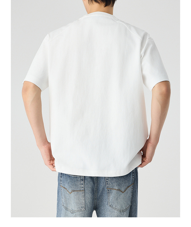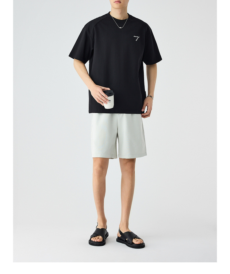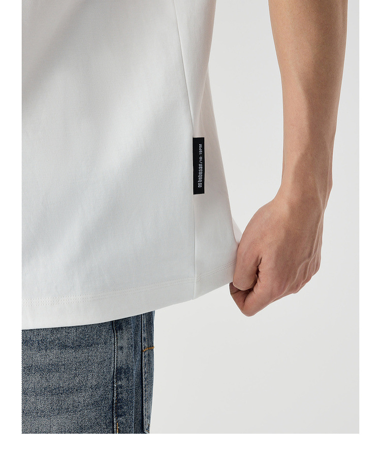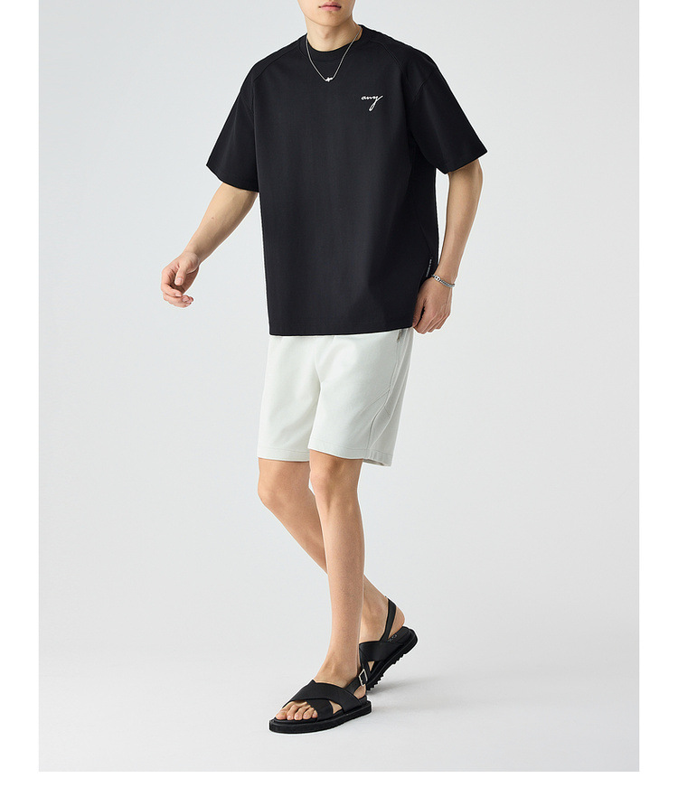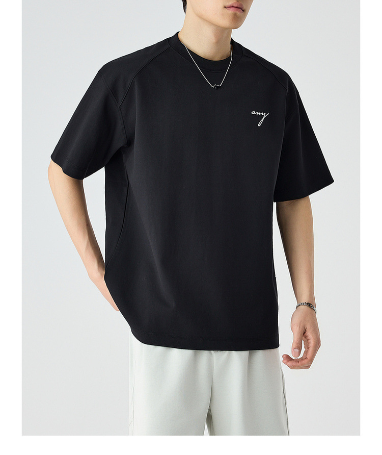 Mo Maike 남자 290g 헤비 크루 넥 쇼트 슬리브 남자 2025 년 여름 새 편지 자수 남성 티셔츠 71866.스토어 가기