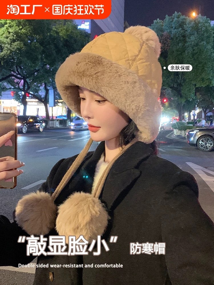 여성용 레이펑 모자, 겨울 플러시 모자, 두꺼운 따뜻한 모자, 귀 보호, 전기 자전거, 여성용 방풍 및 방한 모직 모자스토어 가기