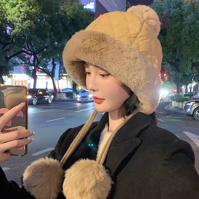 여성용 레이펑 모자, 겨울 플러시 모자, 두꺼운 따뜻한 모자, 귀 보호, 전기 자전거, 여성용 방풍 및 방한 모직 모자