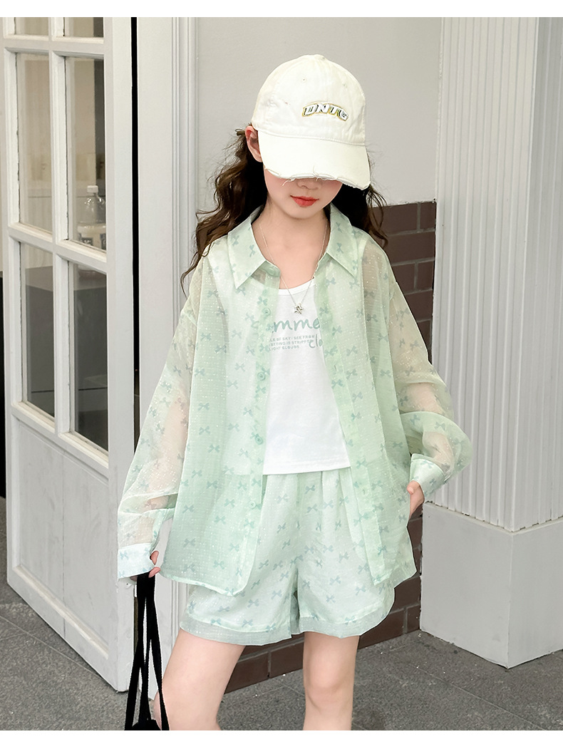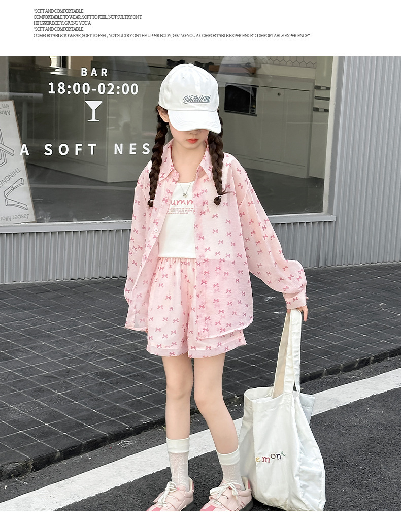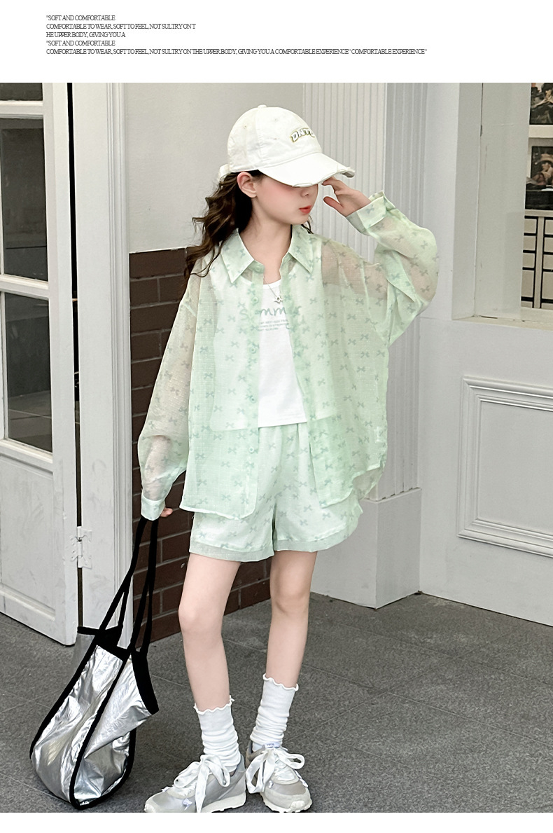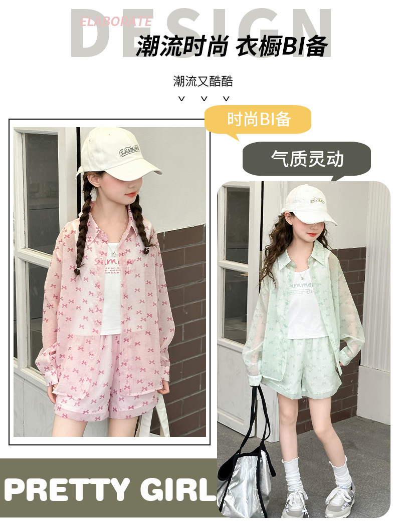 여아 패션 자외선 차단 의류 세트, 여아 긴팔 셔츠 + 반바지, 여행용 여성 여름 레그 팬츠 반바지 투피스 세트스토어 가기
