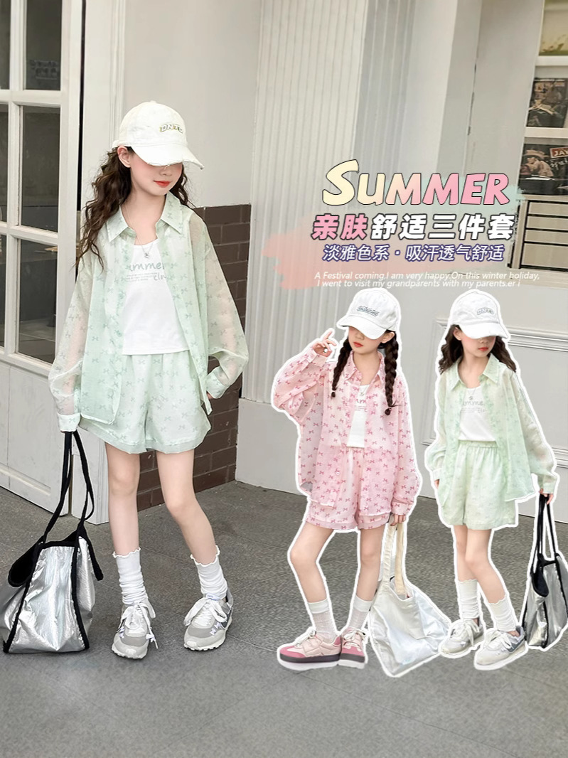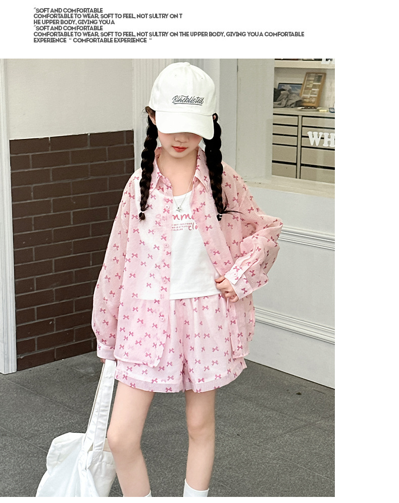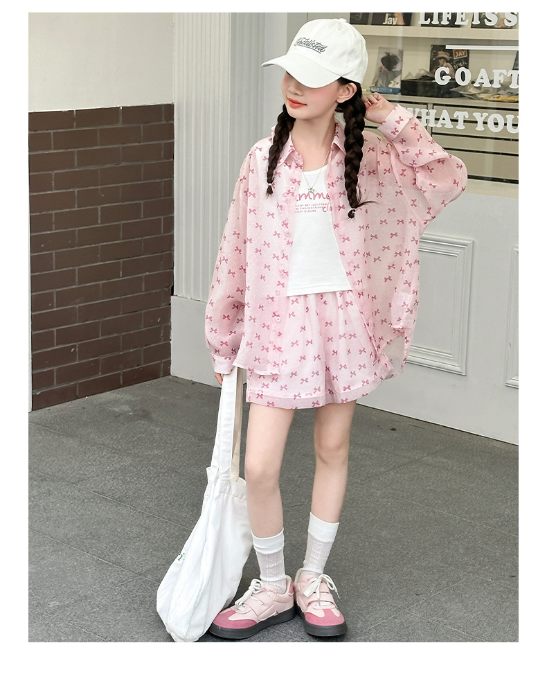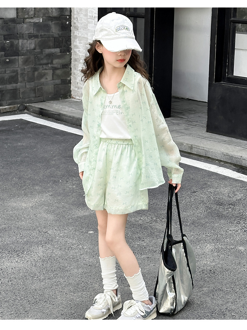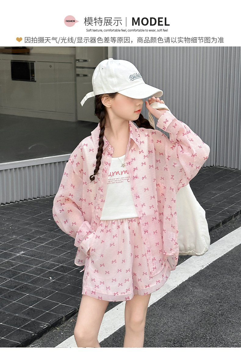 여아 패션 자외선 차단 의류 세트, 여아 긴팔 셔츠 + 반바지, 여행용 여성 여름 레그 팬츠 반바지 투피스 세트스토어 가기