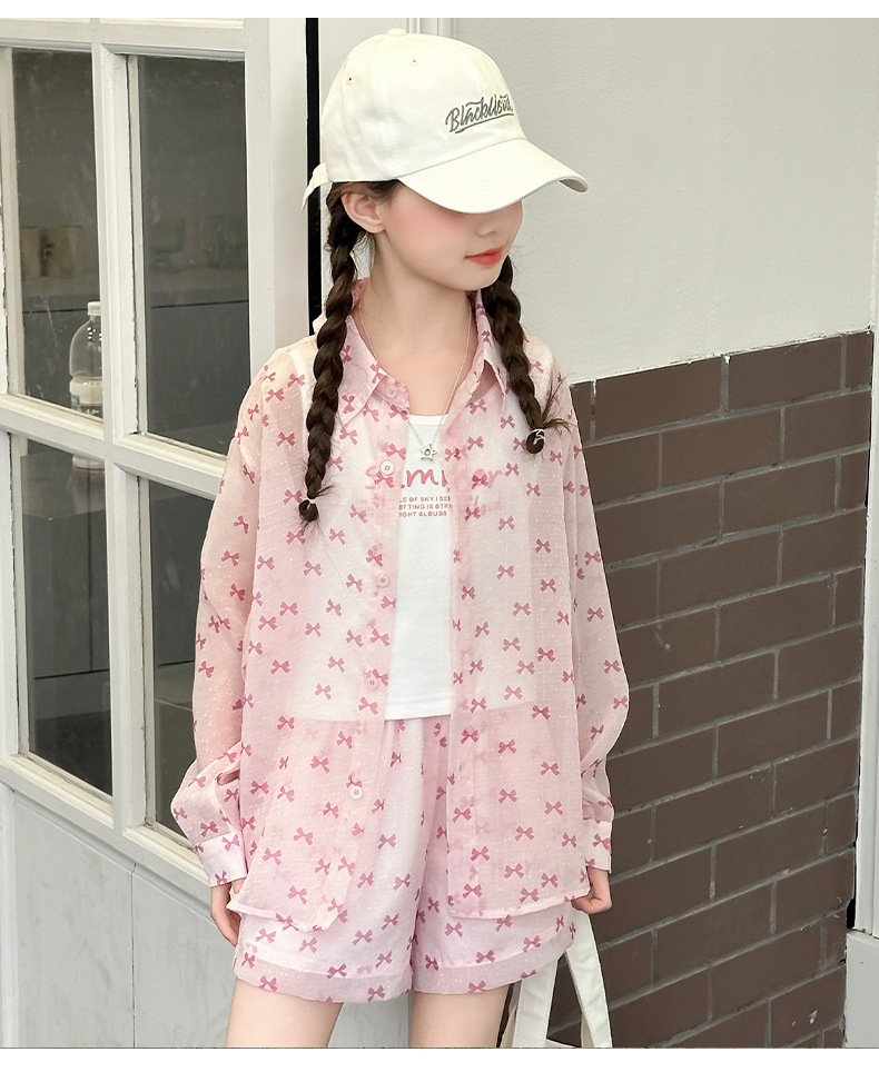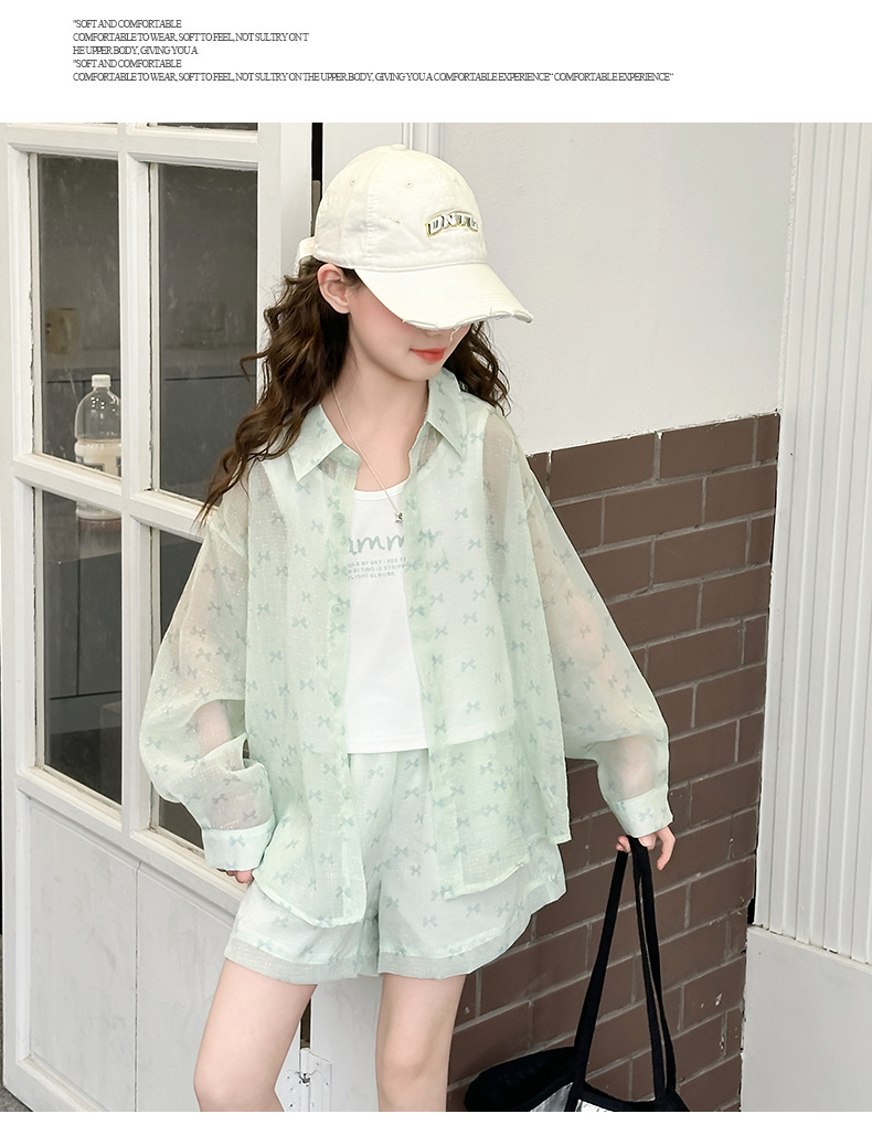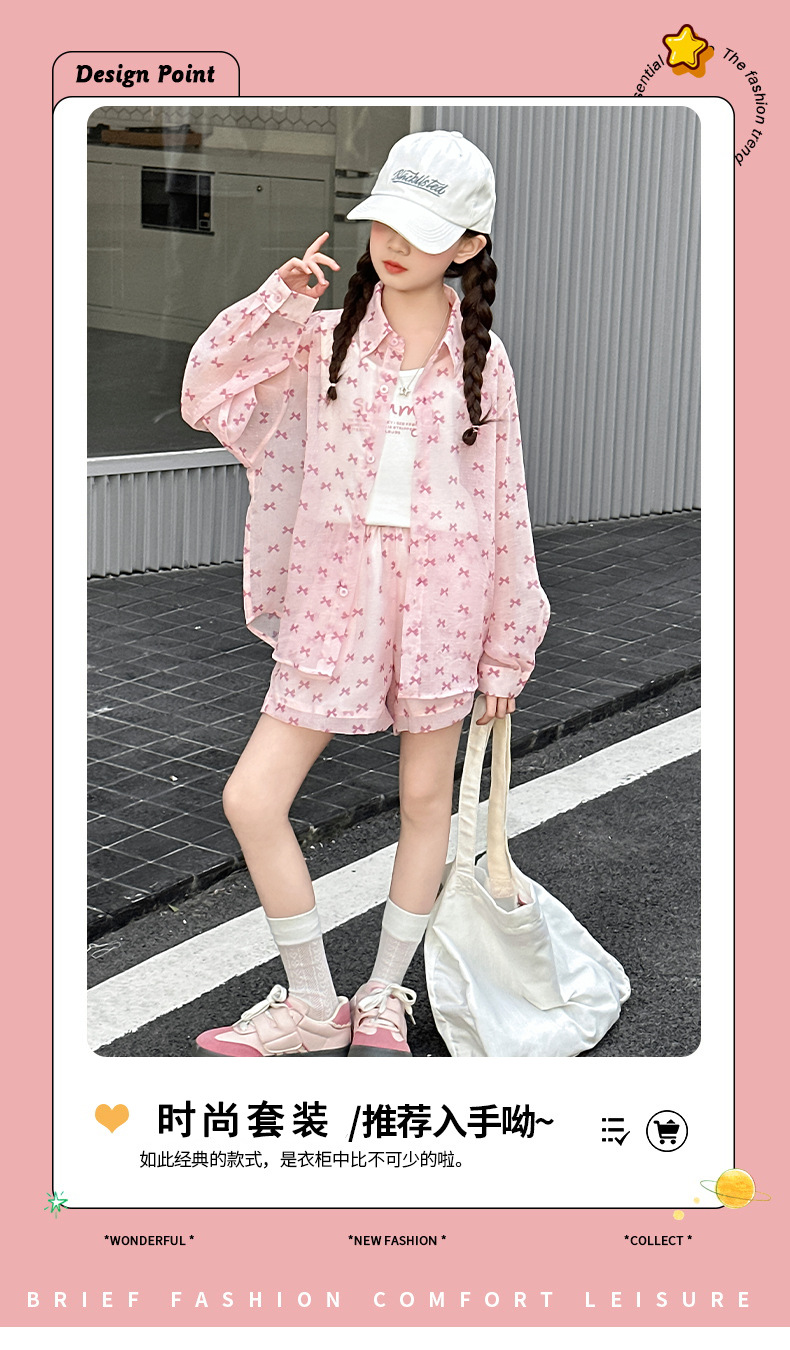 여아 패션 자외선 차단 의류 세트, 여아 긴팔 셔츠 + 반바지, 여행용 여성 여름 레그 팬츠 반바지 투피스 세트