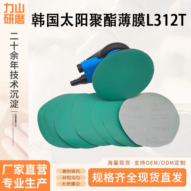 한국산 태양광 폴리에스테르 필름 L312T 원형 디스크 사포 브러시드 시트는 습식 및 건식 사용이 가능하며 막힘 방지 및 맞춤형 크기로 사용 가능합니다.