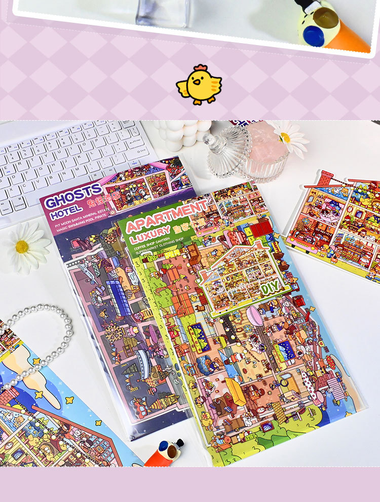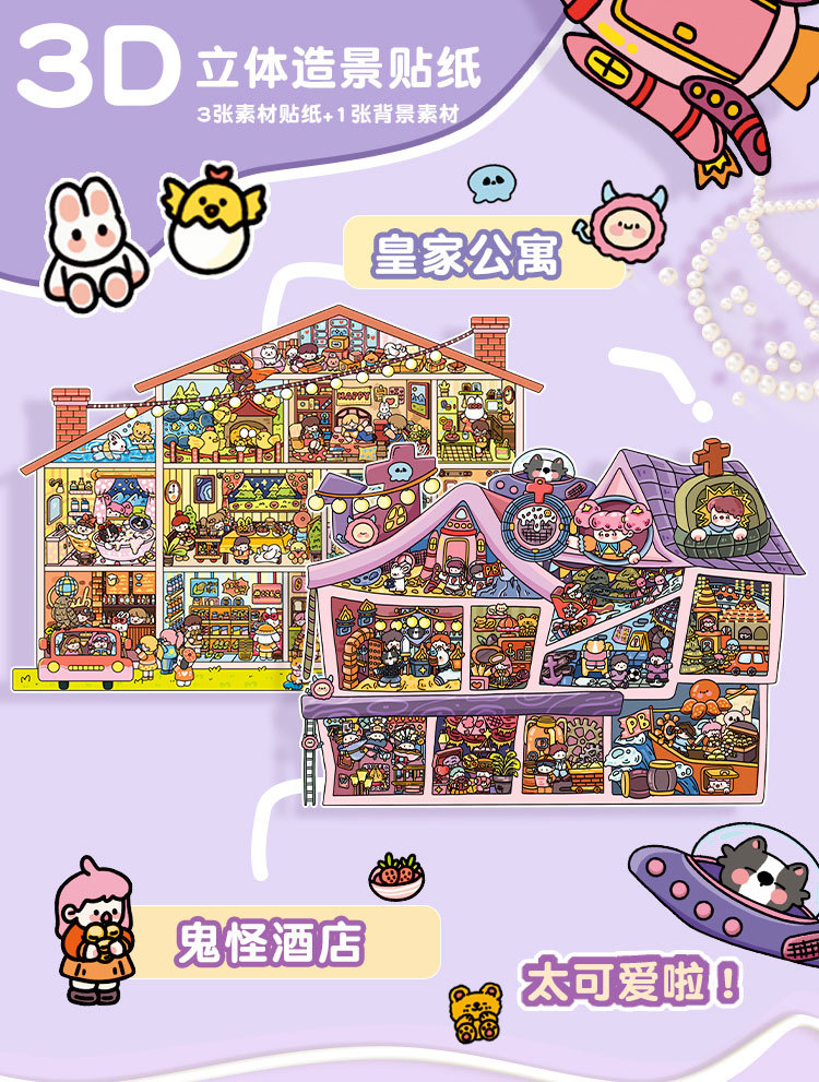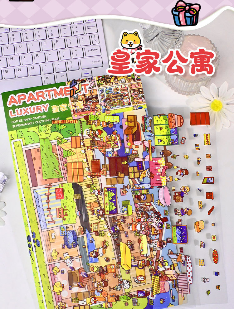 Senyou 대형 에디션 8.0 풍경 스테레오 캐빈 스티커 미니 감압 수제 스티커 2.5D 풍경 DIY 스티커스토어 가기