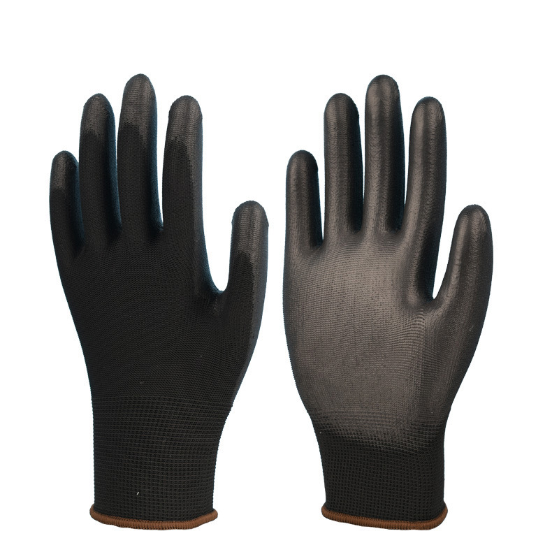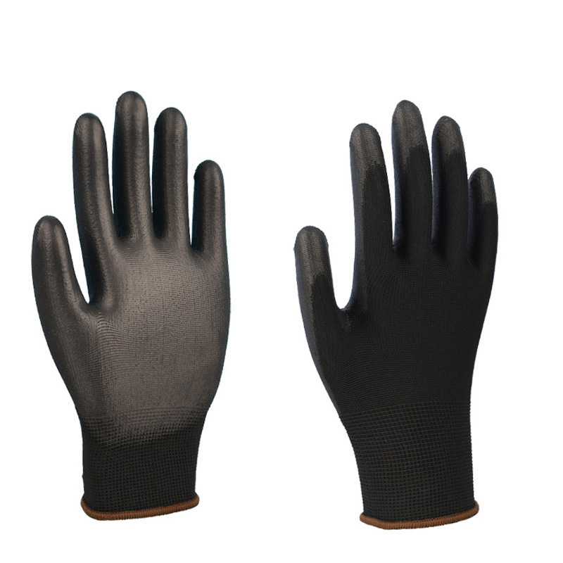 PU 코팅 손바닥 검정색 내마모성 킹 작업 얇은 손바닥 담근 노동 보호 장갑 나일론 고무 바늘 폴리 에스터 미끄럼 방지