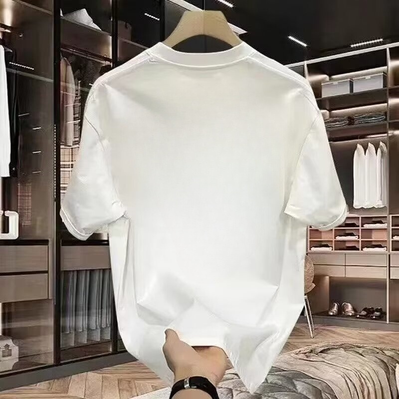여름 퓨어 코튼 반팔 티셔츠 남성용 반팔 라운드 넥 퓨어 코튼 티셔츠 슬림 핏 라운드 넥 탑 반소매 프린트 트렌디스토어 가기