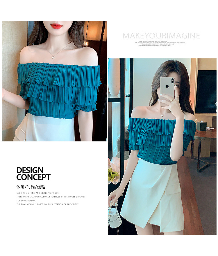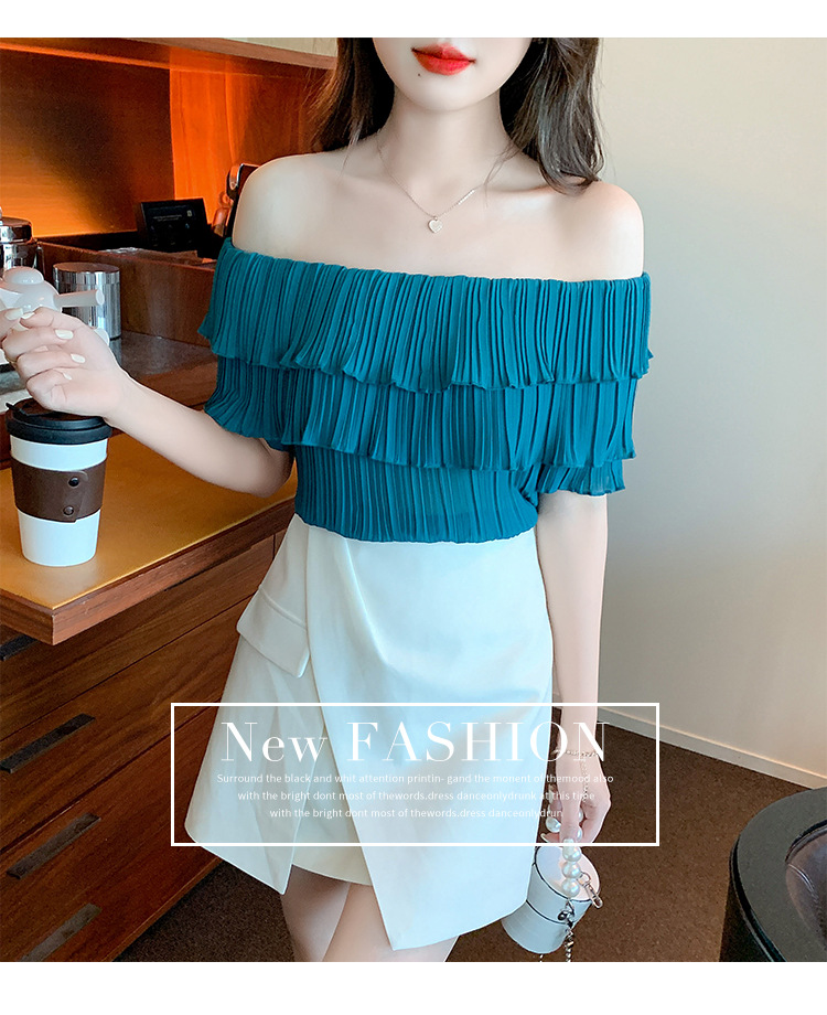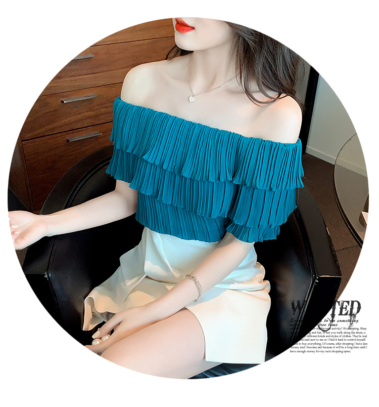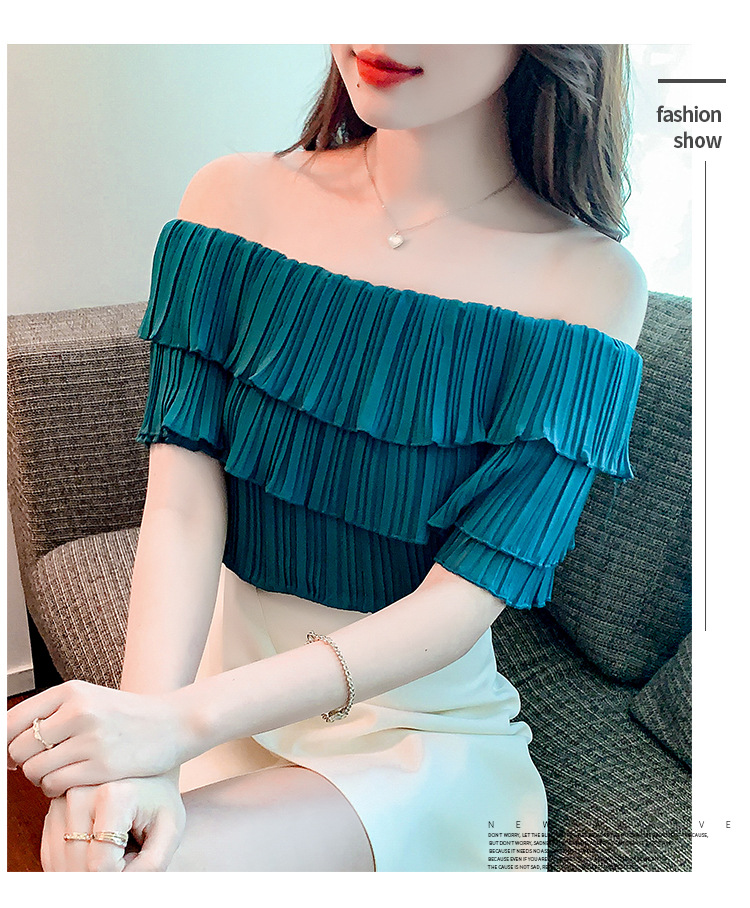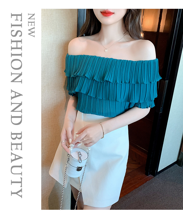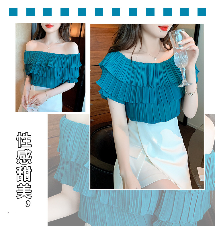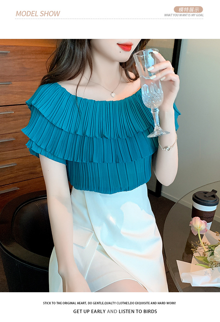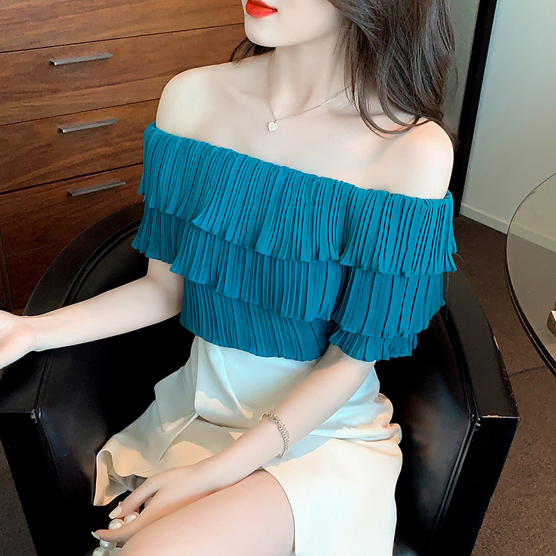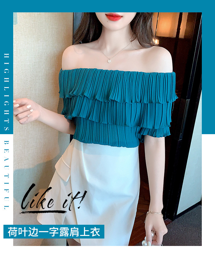 매우 요정 오프 숄더 쉬폰 셔츠 반팔 여성용 2025 년 여름 새로운 한국식 러플 서양식 숄더 탑