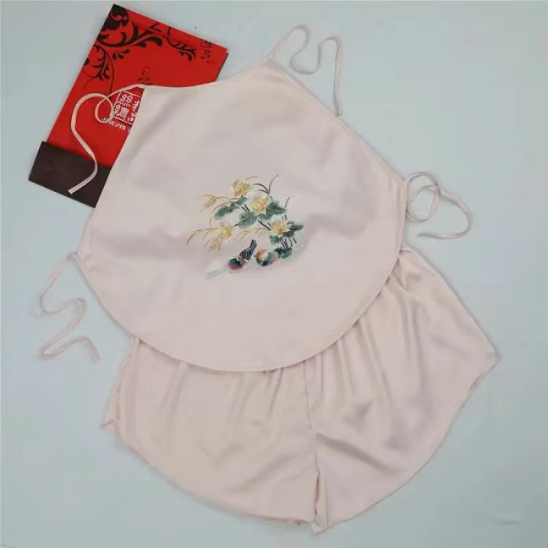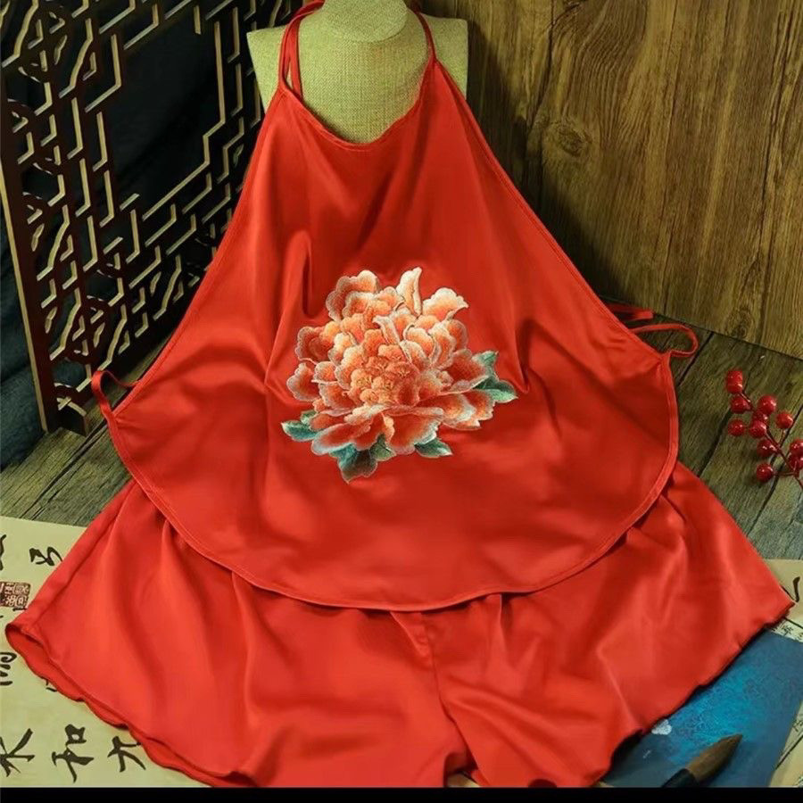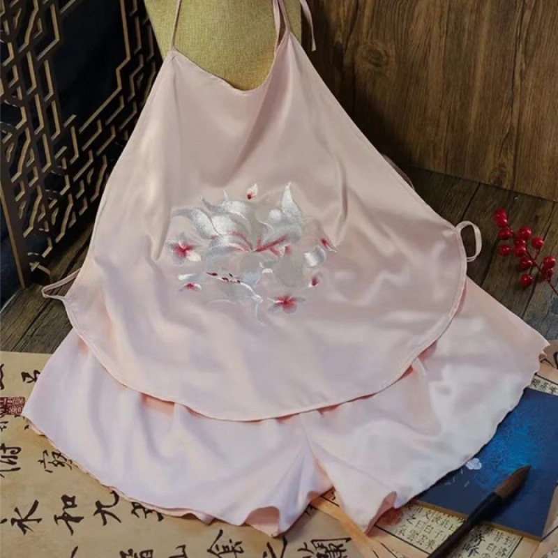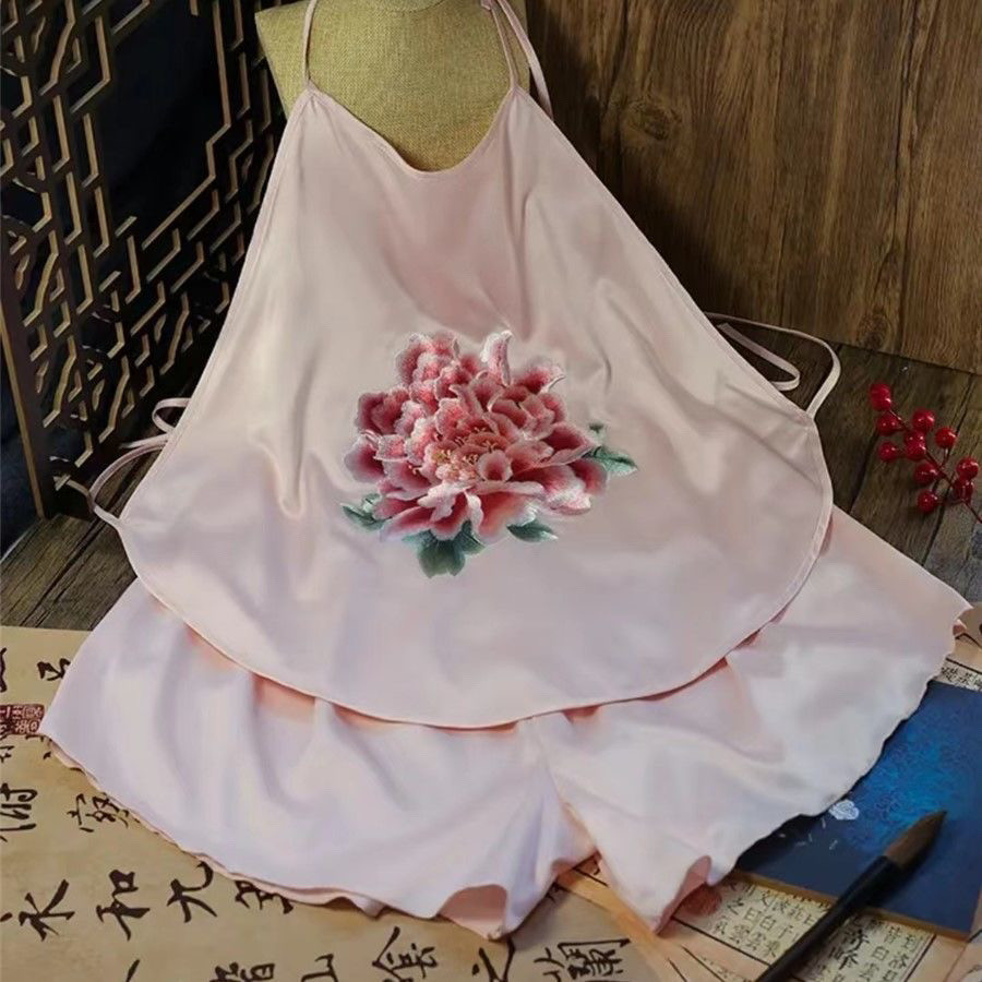 수 자수 민족 스타일 섹시한 잠옷 골동품 스타일 수 놓은 조끼 성인 여성 속옷 서스펜더 여성용 더블 레이어 잠옷