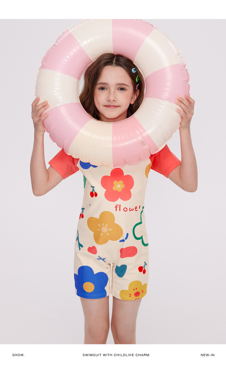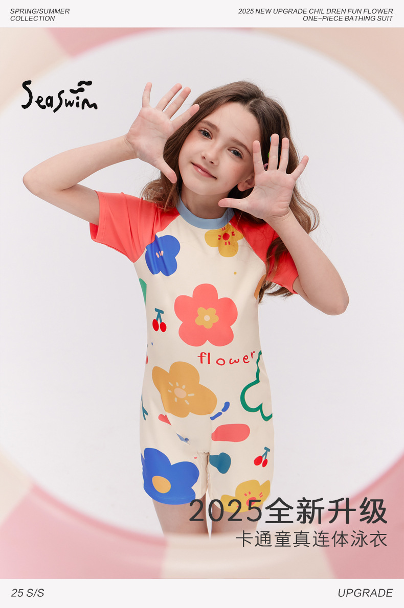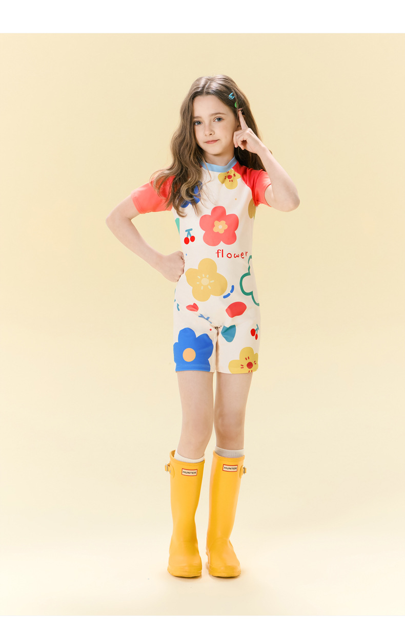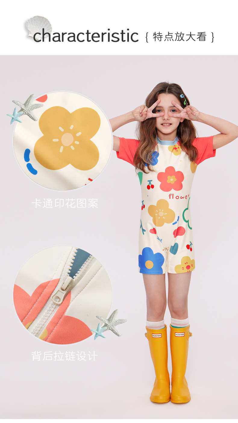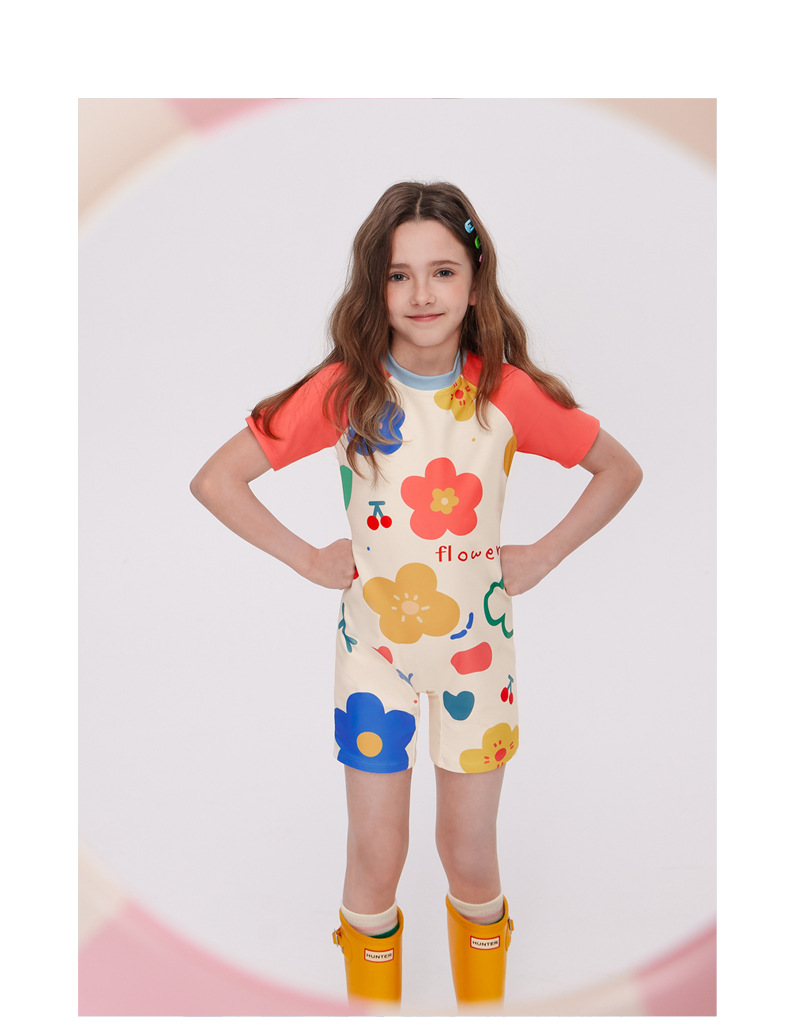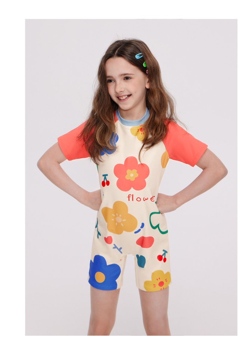 어린이 수영복 소녀 2024 새로운 반바지 속건성 원피스 온천 자외선 차단 캐주얼 아동 수영복 도매