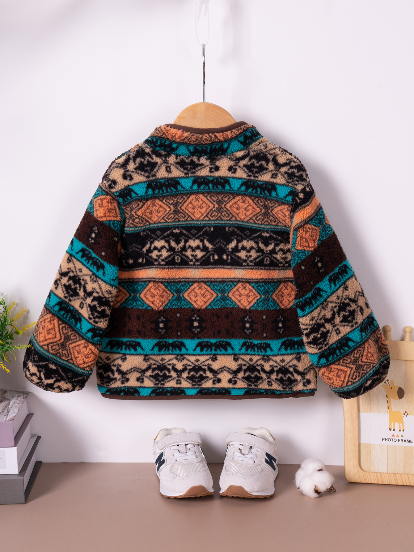 2025년 가을 겨울 새로운 스타일의 남아 및 여아용 아동 상의, 폴라 플리스 가디건, 에스닉 스타일 재킷, 패셔너블하고 따뜻함