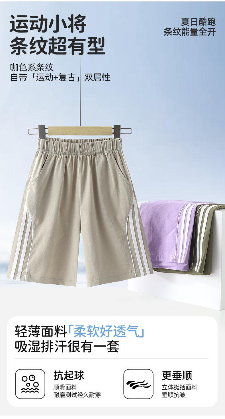 소년 5 점 바지 어린이 빠른 건조 캐주얼 바지 여름 소년 통기성 5 점 바지 얇은 중형 및 대형 어린이 느슨한 시원한 느낌