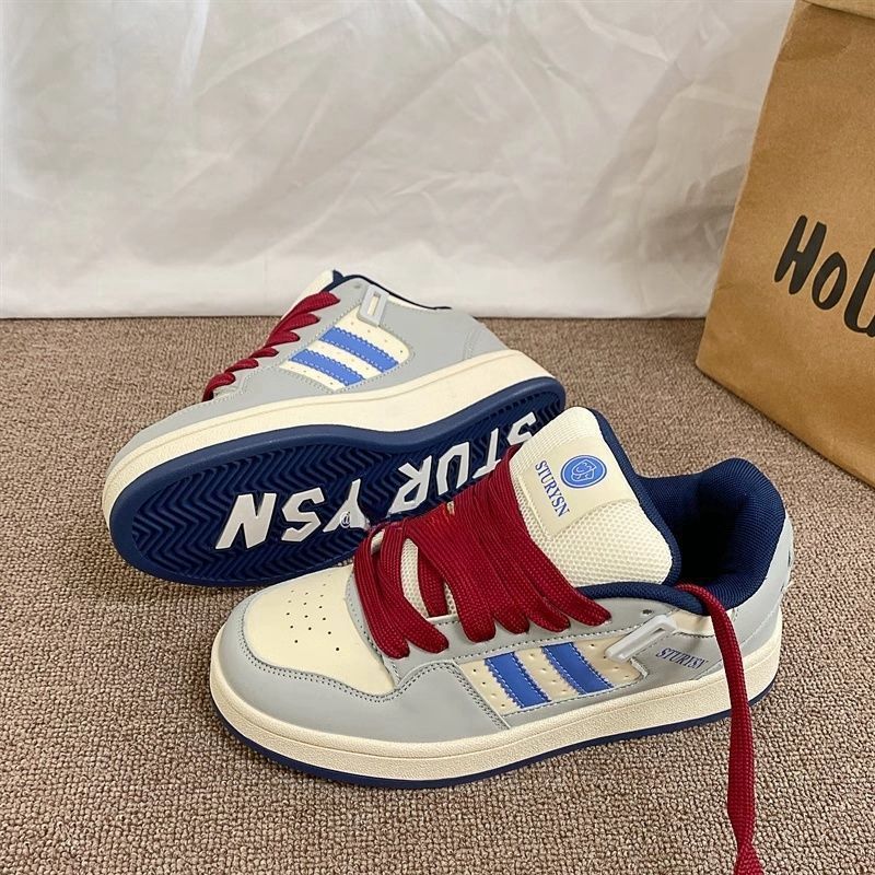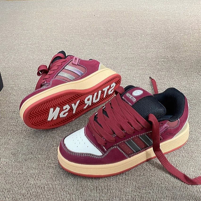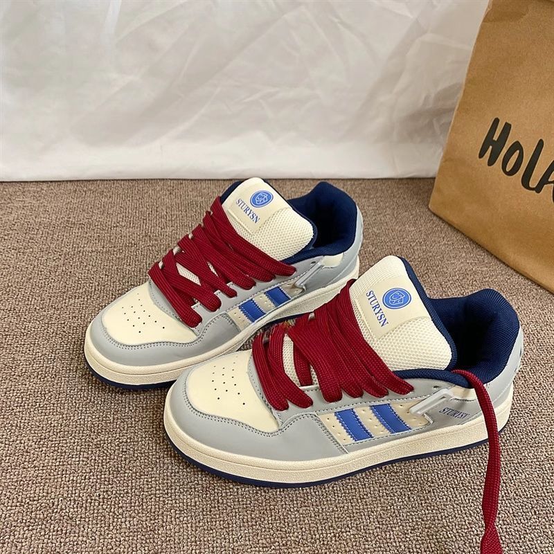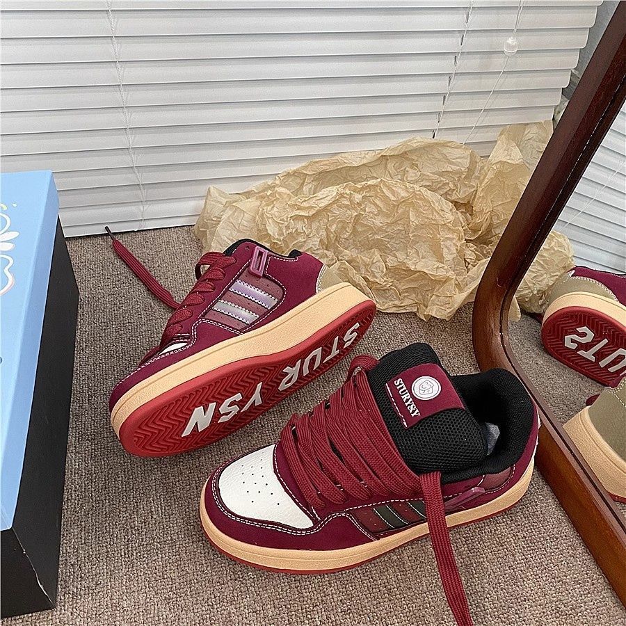 여성을 위한 와인 레드 컬러의 빵 신발의 한국어 버전 2025 봄 여름 새로운 틈새 다용도 캐주얼 운동화스토어 가기
