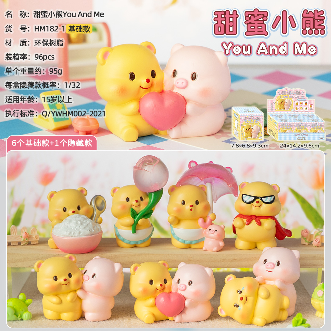 푸우 베어 무리 블라인드 박스 귀여운 침실 홈 장식 수지 장식품 어린이 휴가 선물 머리카락 세대스토어 가기