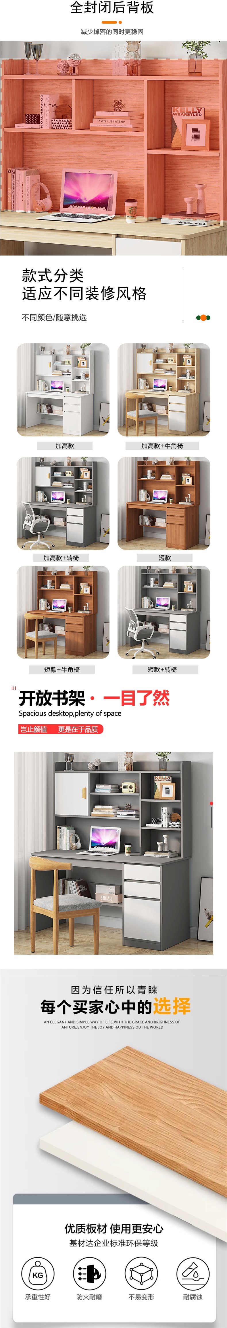 컴퓨터 책상 침실 홈 데스크 책장 통합 학생 홈 책상 간단한 임대 주택 책상