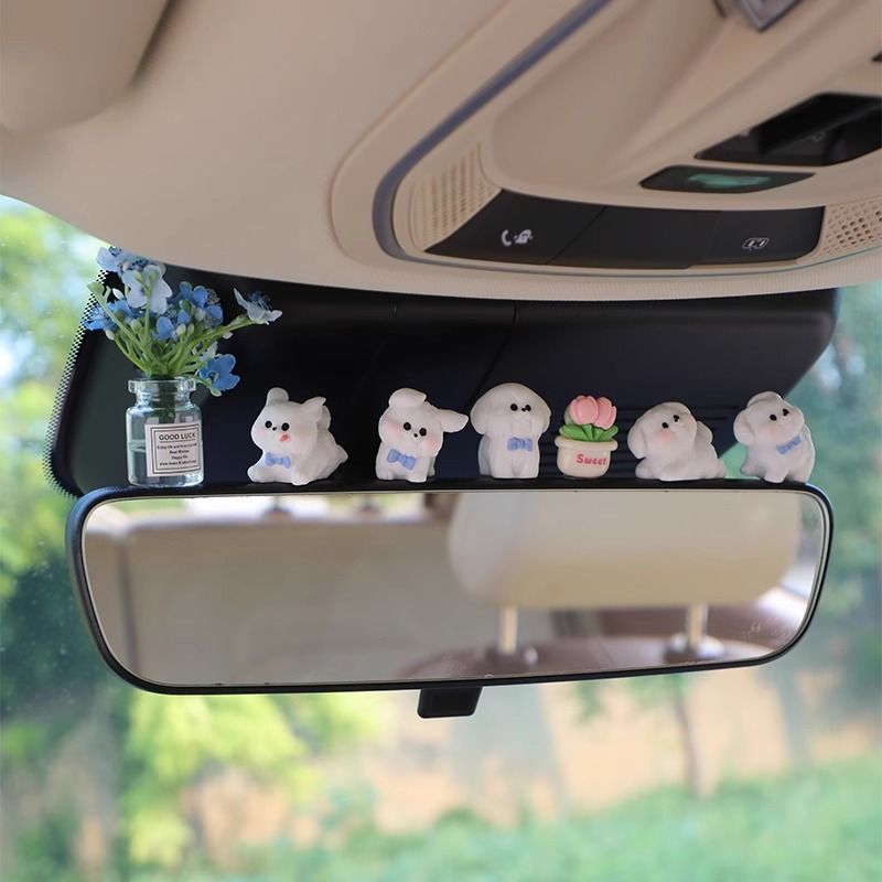 车内饰品摆件可爱女士汽车中控台解压小白狗公仔装饰