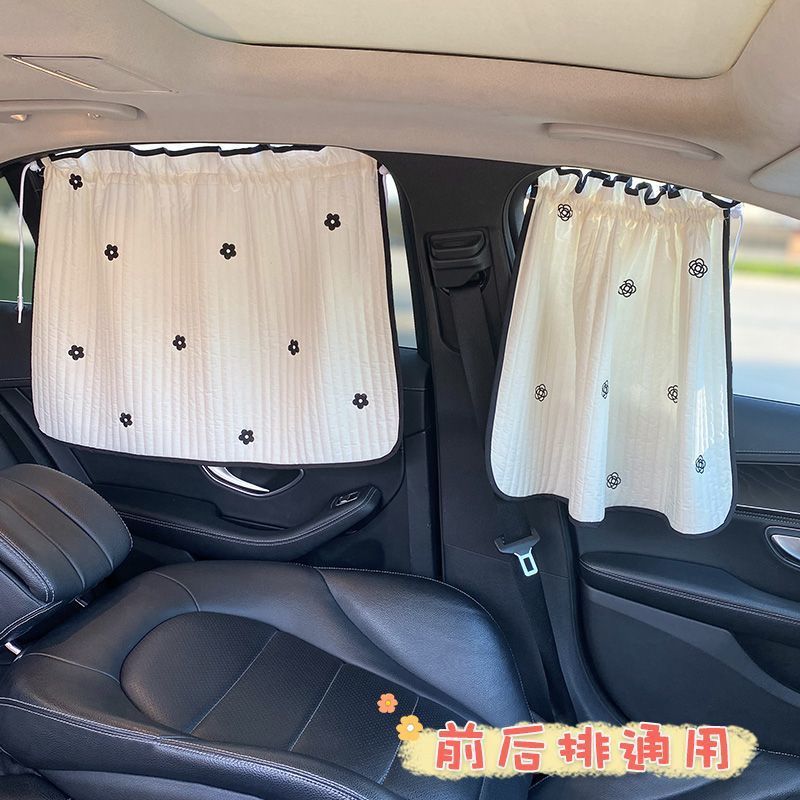 汽车遮阳帘车内山茶花印花刺绣款免打孔吸盘式防晒后排通用款遮光