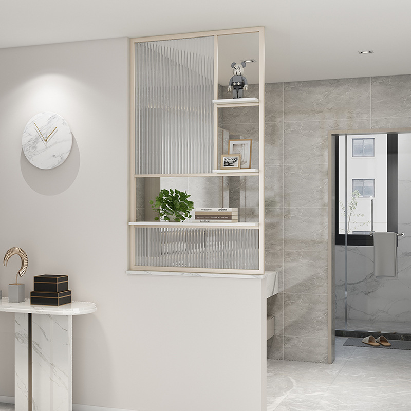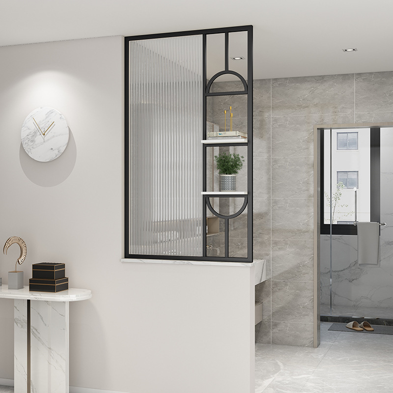 Changhong 물결 무늬 유리 스크린 파티션 간단한 현대 거실 차단 입구 금속 현관 세면대 파티션 벽