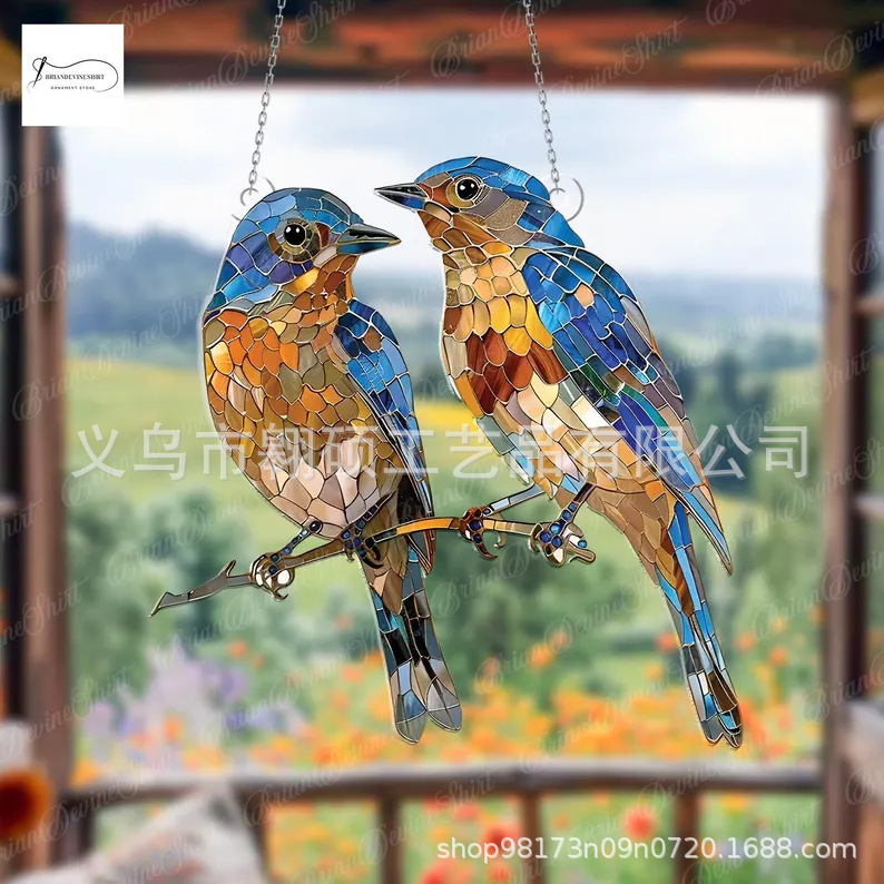 화려한 블루 버드 아크릴 창 매달려, 멋진 새 장식, 독특한 가정 장식,