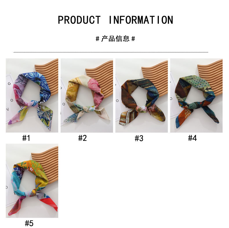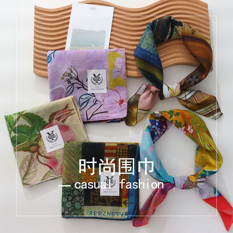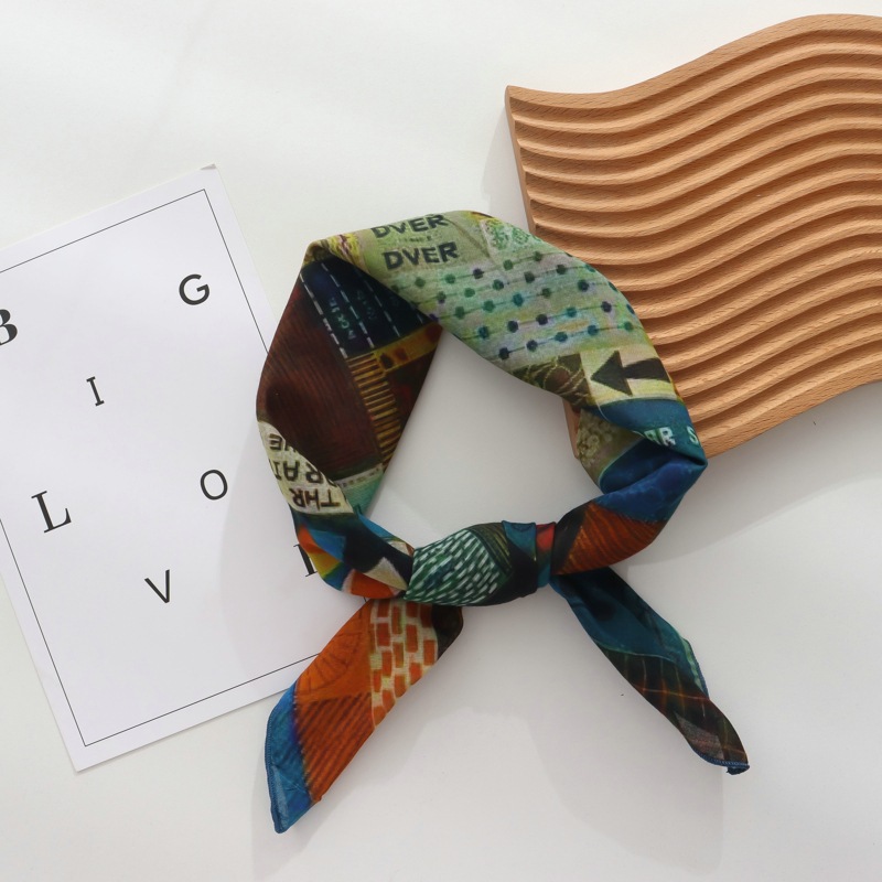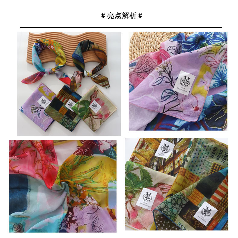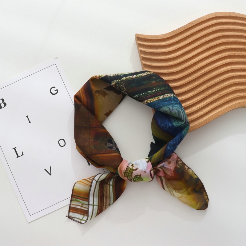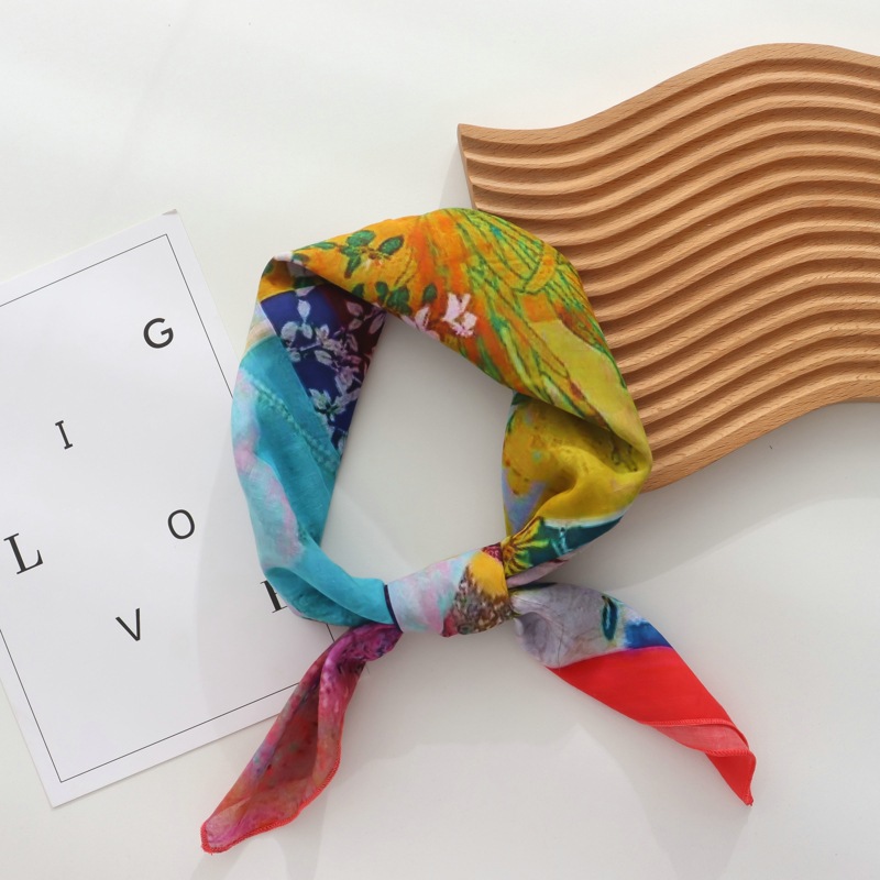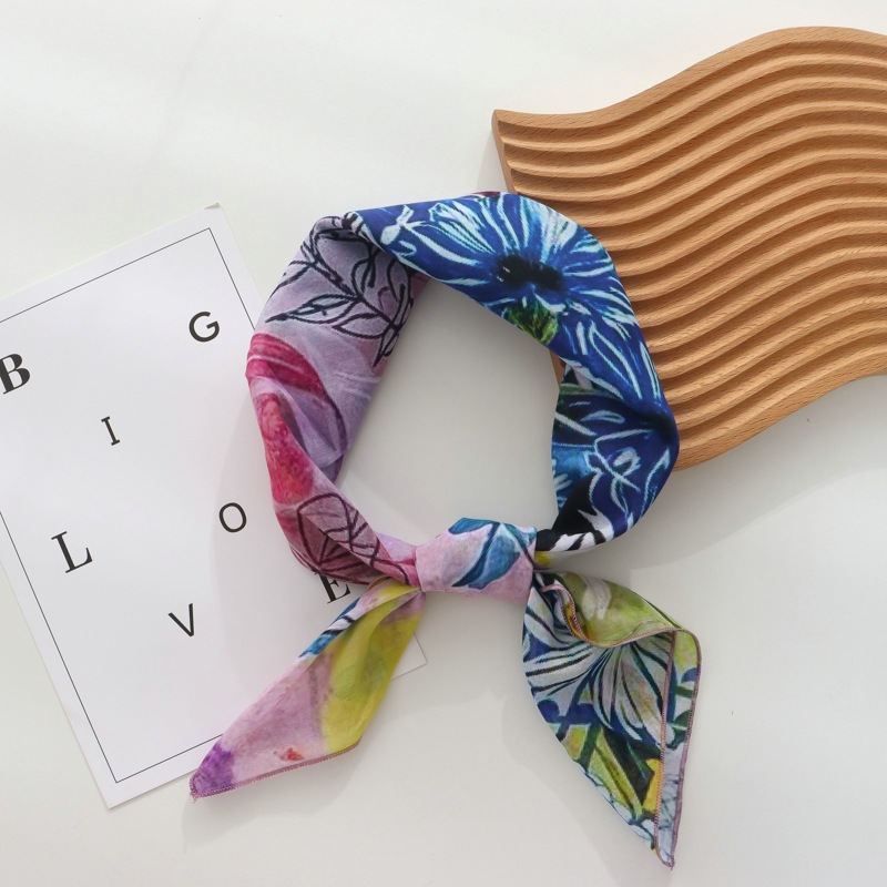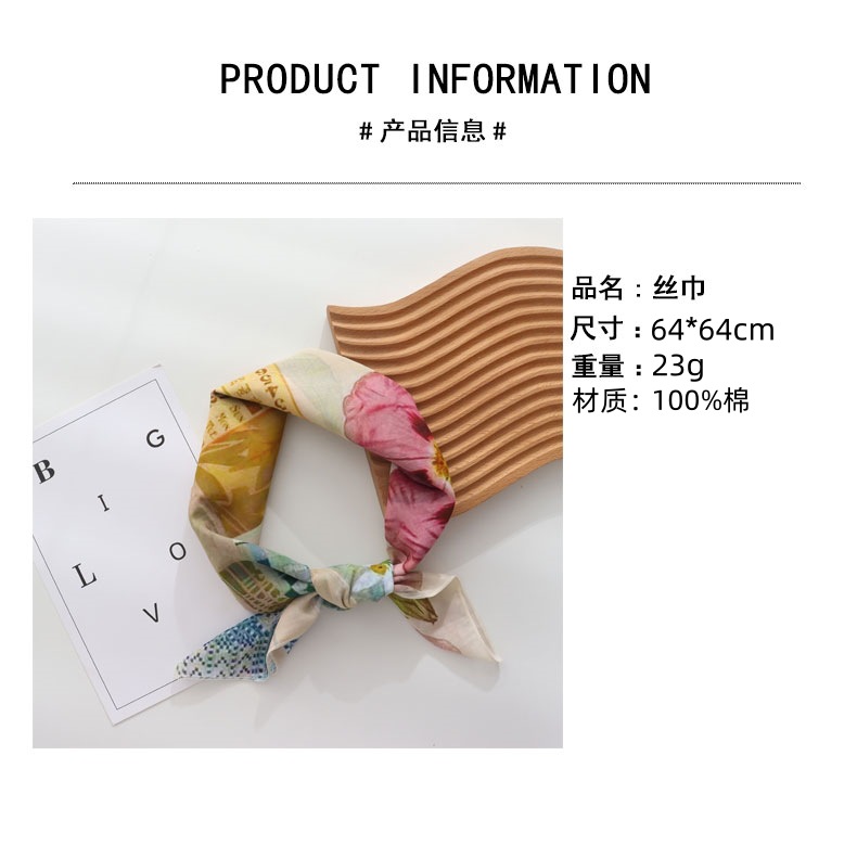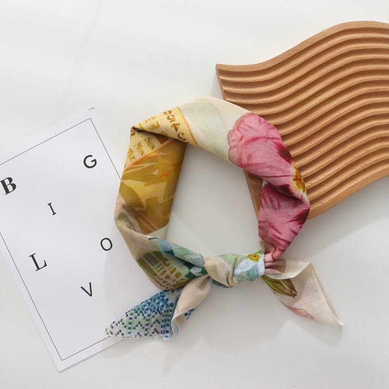 여성을위한 100% 면 목가적 인 유화 스타일 작은 사각형 스카프 봄과 여름 새로운 패션 다목적 장식 가방 헤어 밴드