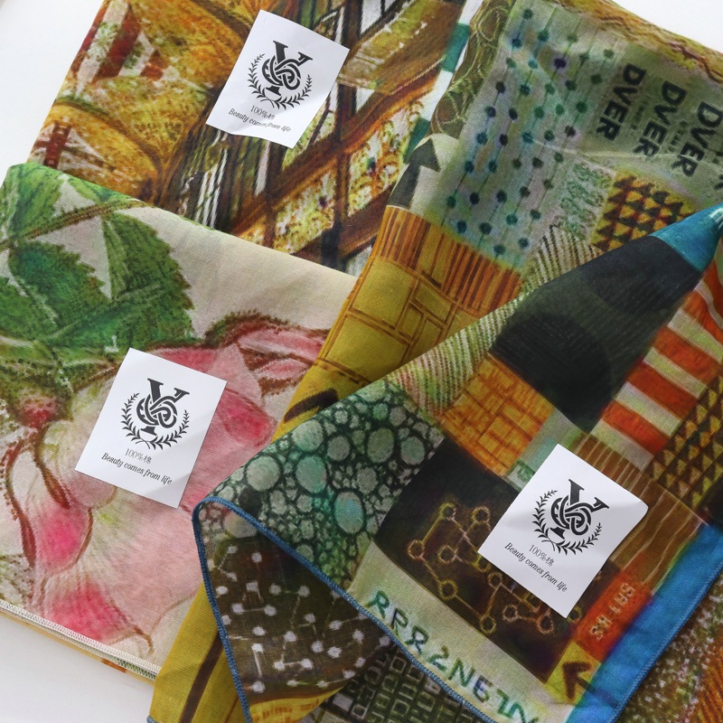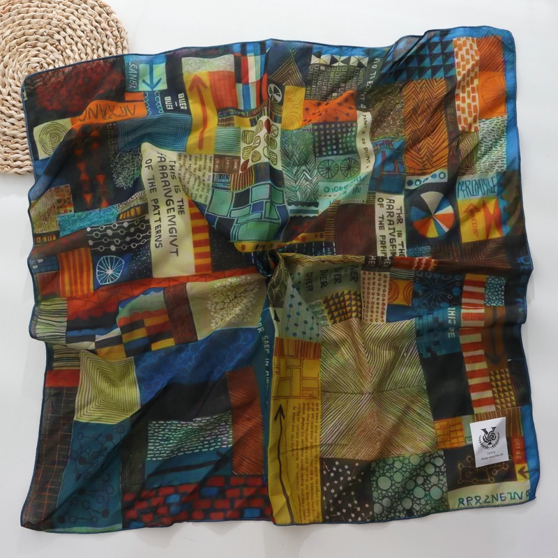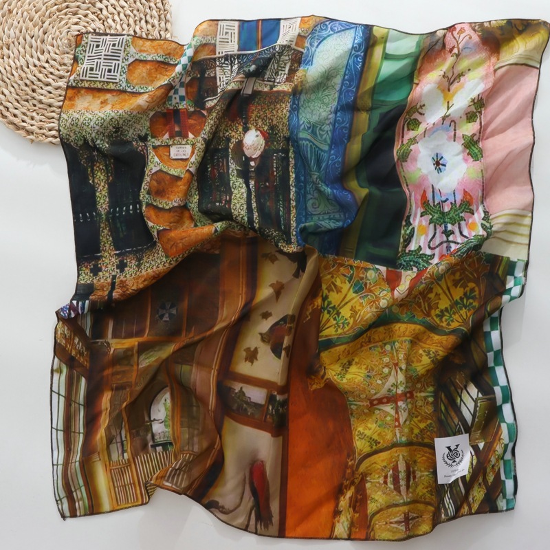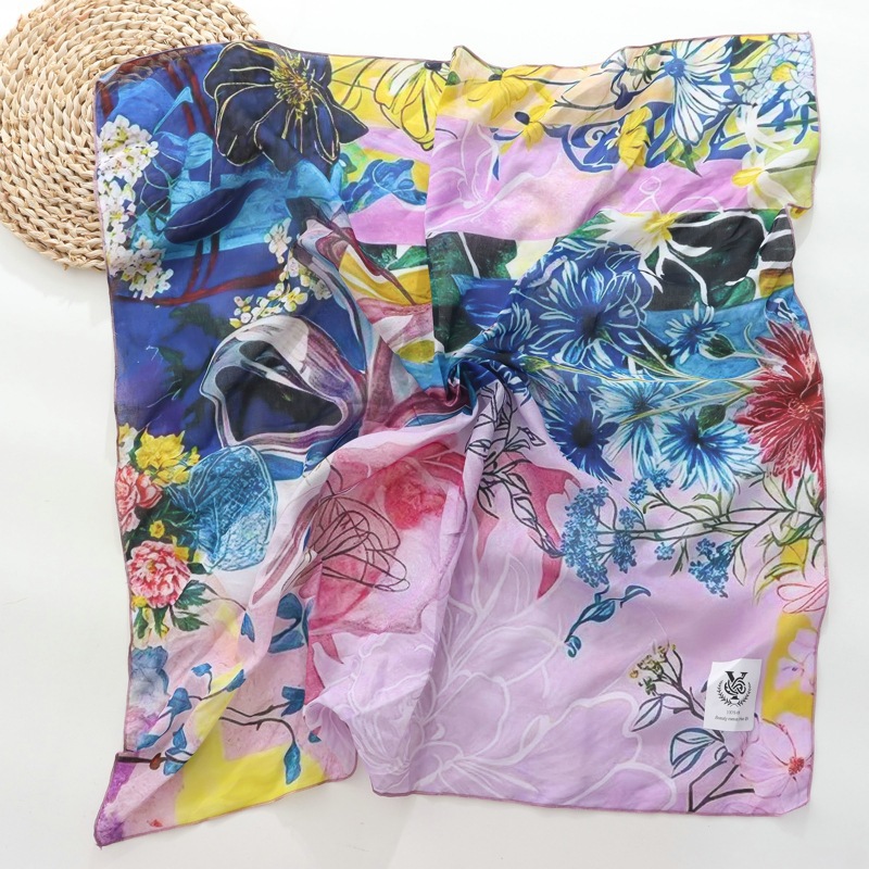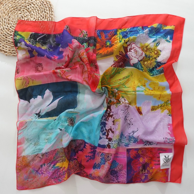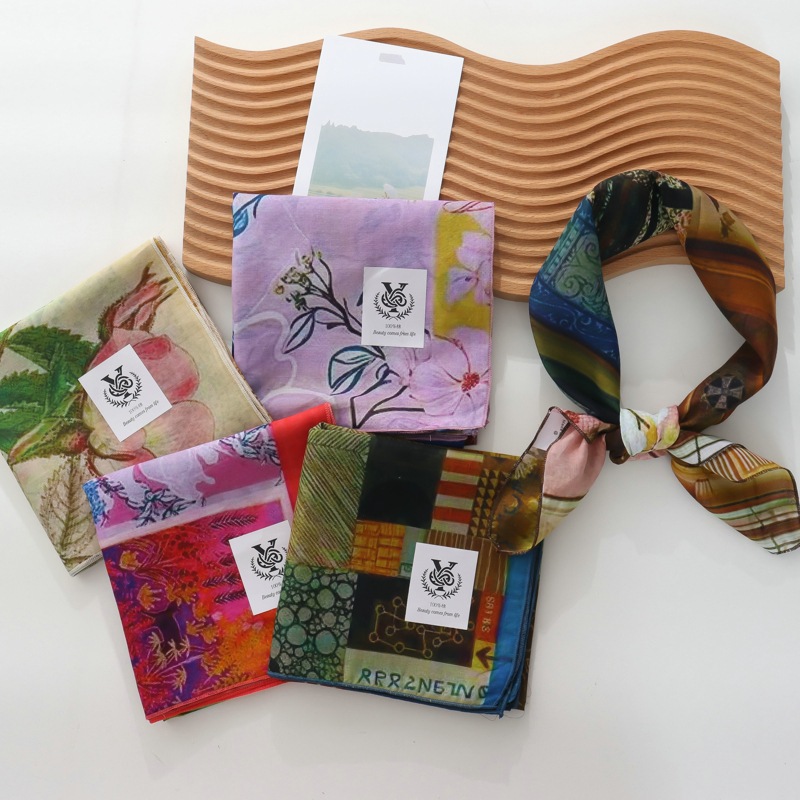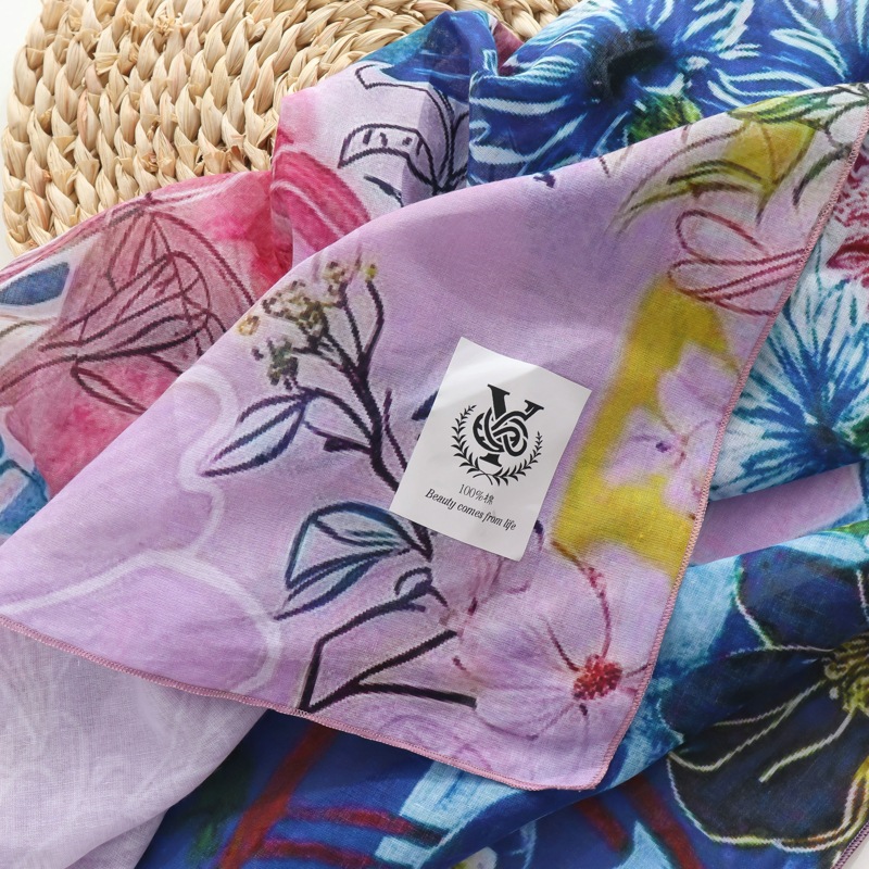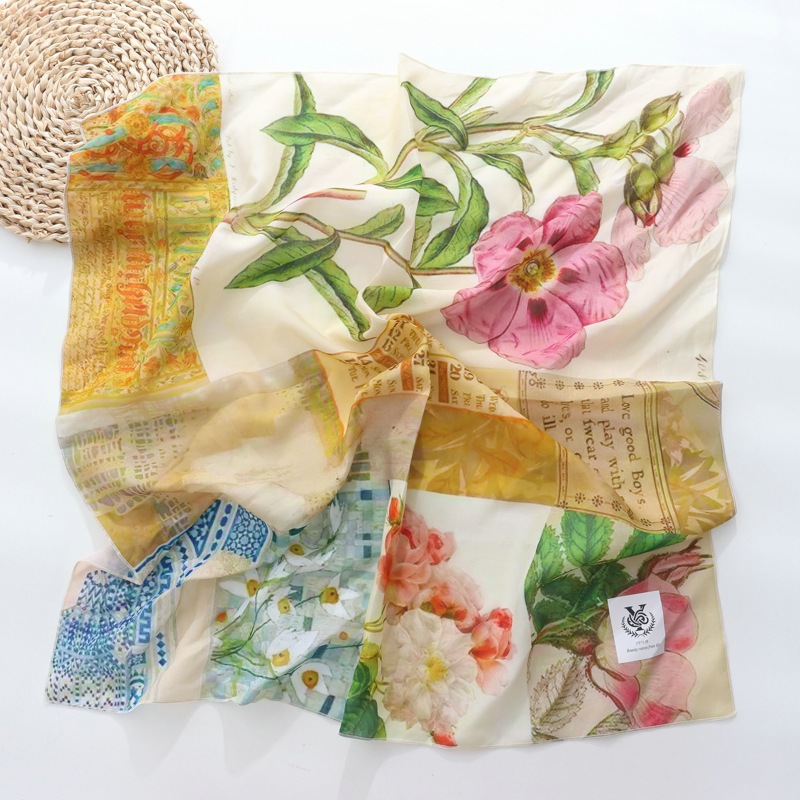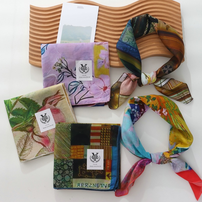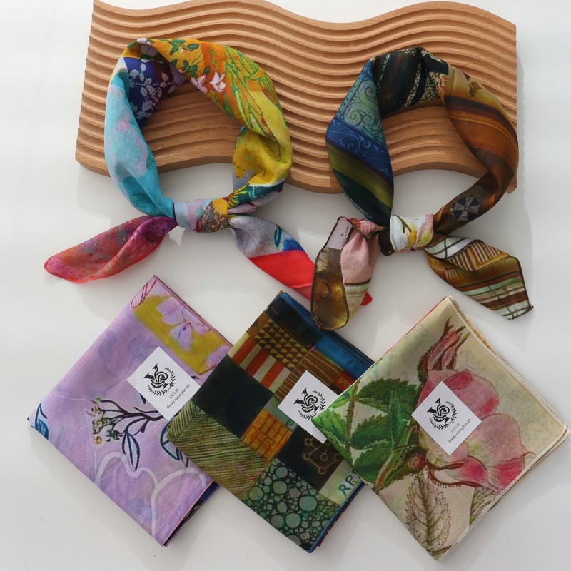 여성을위한 100% 면 목가적 인 유화 스타일 작은 사각형 스카프 봄과 여름 새로운 패션 다목적 장식 가방 헤어 밴드
