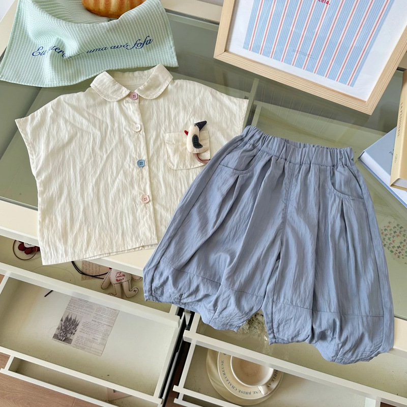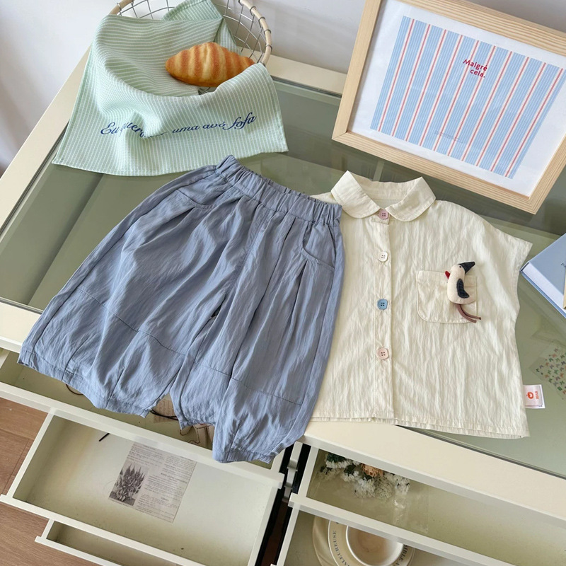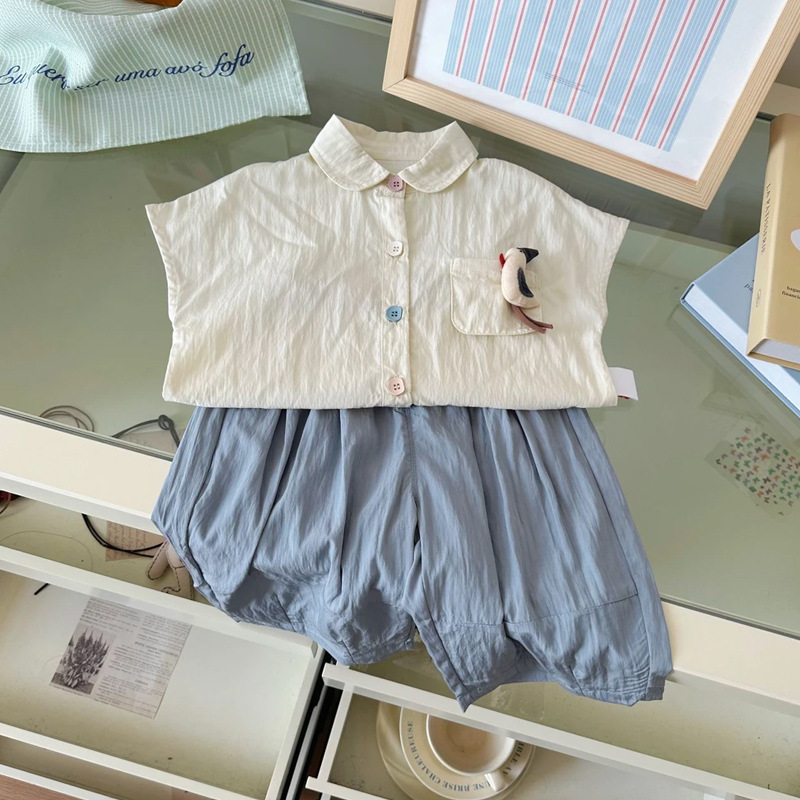 [재고 있음] 소년 2025 새로운 여름 정장 아동용 반팔 셔츠 옷 한국 스타일 베이비 캐주얼 바지