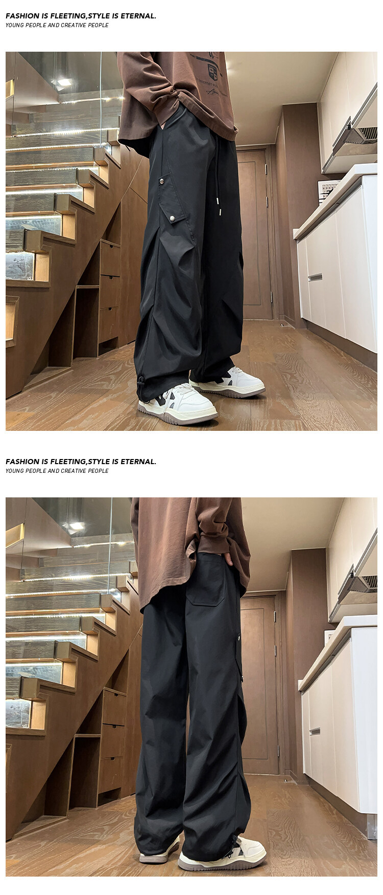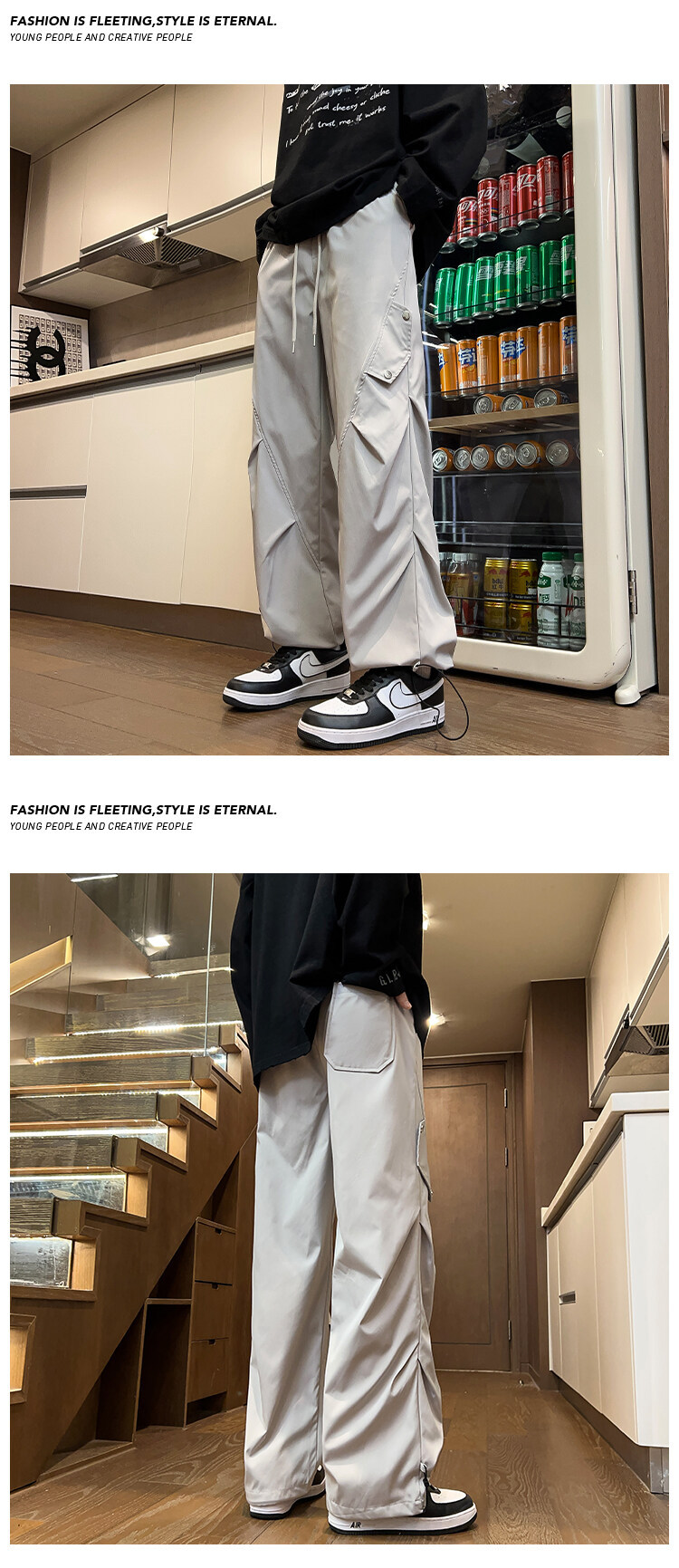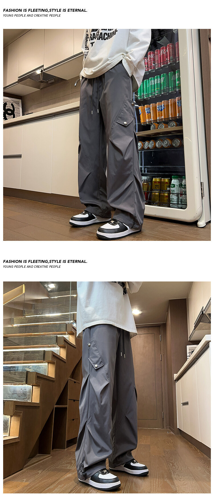 여름 가볍고 시원한 바지, 야외 스포츠 등산 캐주얼 루즈한 작업복 바지 주름진 속건성 남성용 낙하산 바지스토어 가기