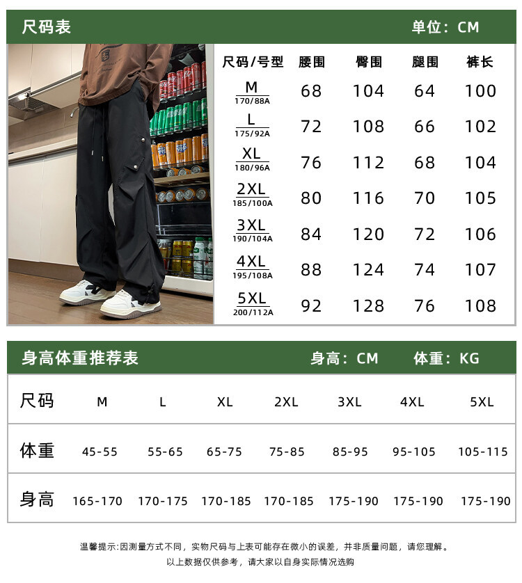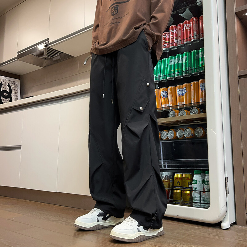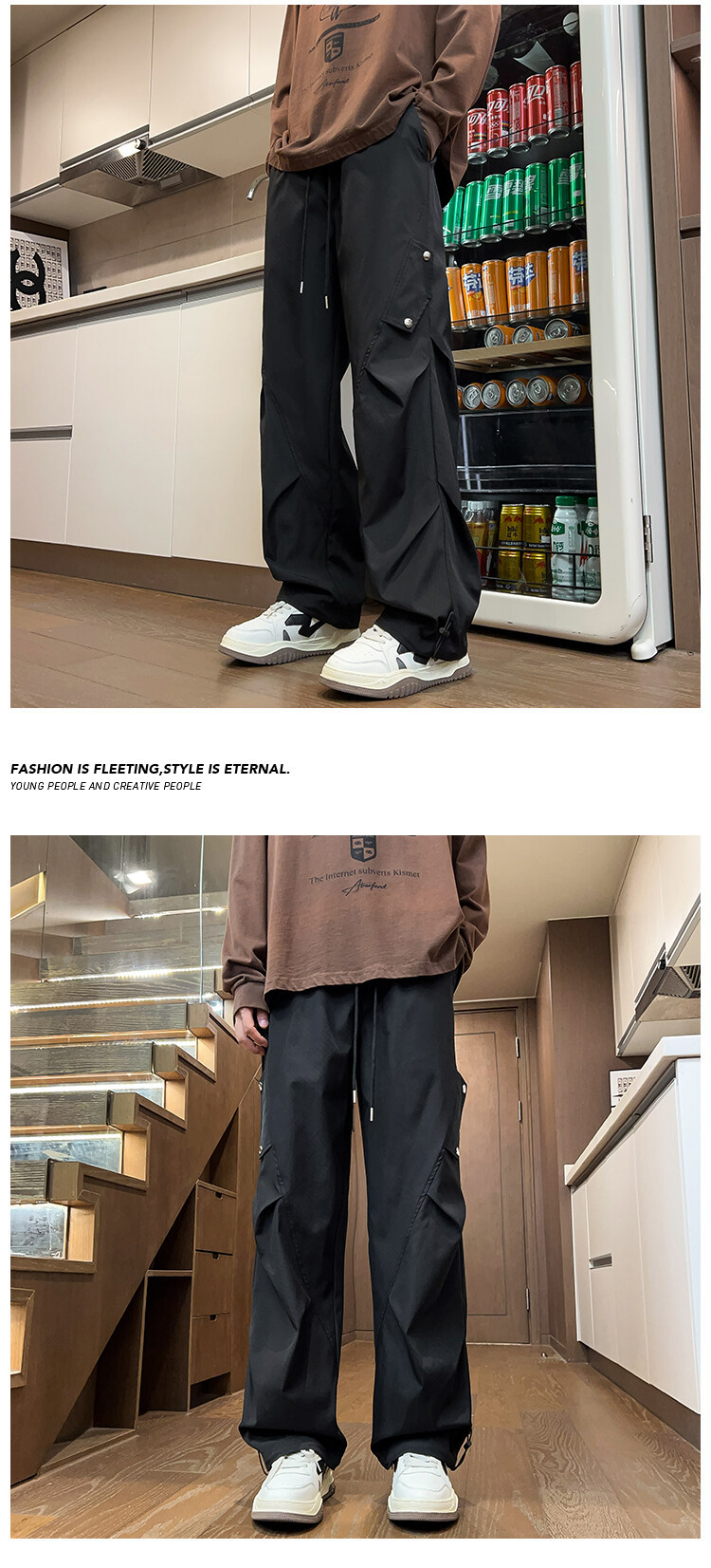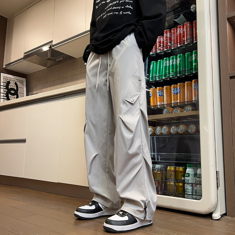 여름 가볍고 시원한 바지, 야외 스포츠 등산 캐주얼 루즈한 작업복 바지 주름진 속건성 남성용 낙하산 바지스토어 가기