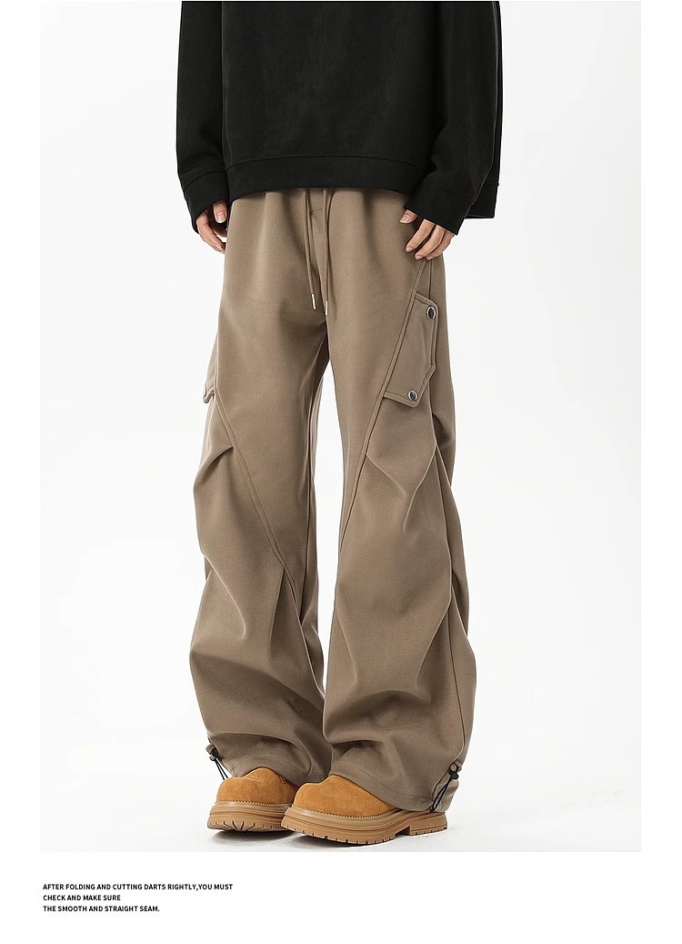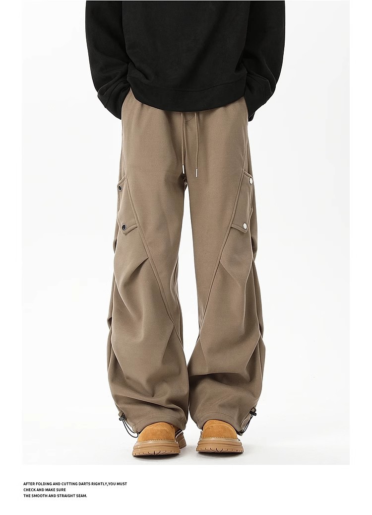 여름 가볍고 시원한 바지, 야외 스포츠 등산 캐주얼 루즈한 작업복 바지 주름진 속건성 남성용 낙하산 바지