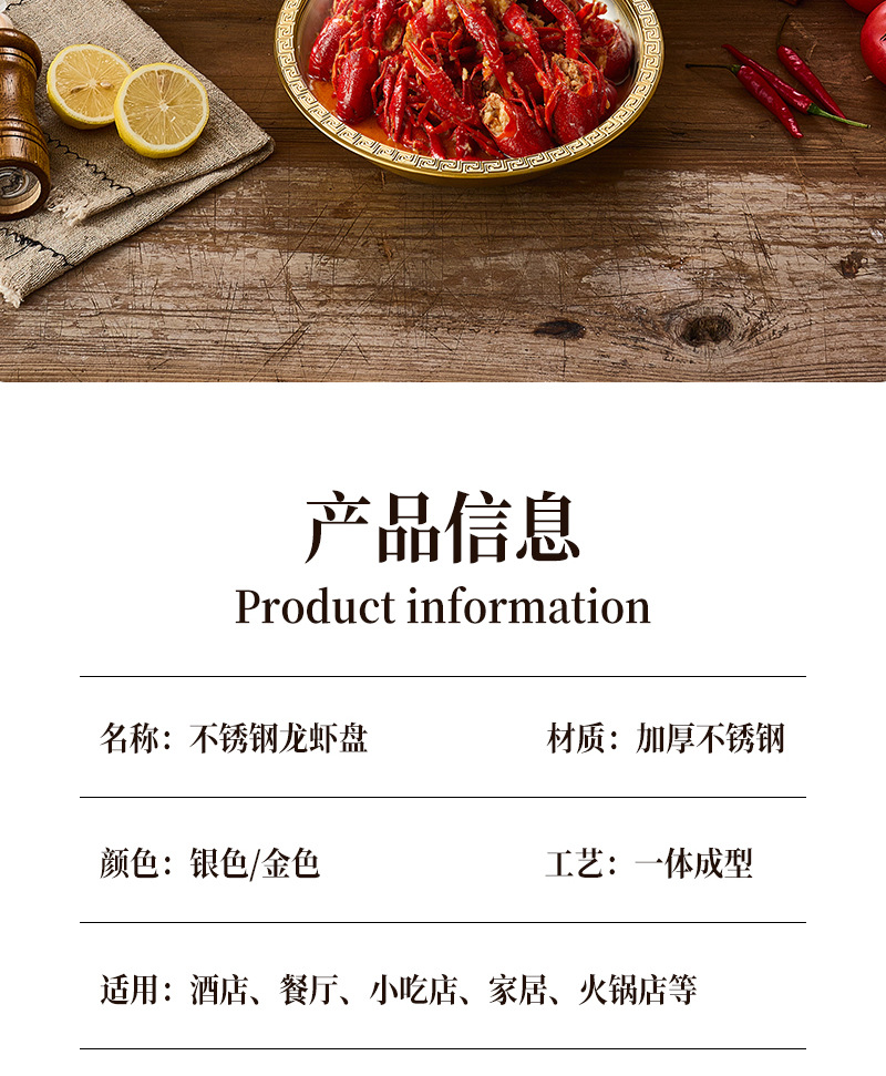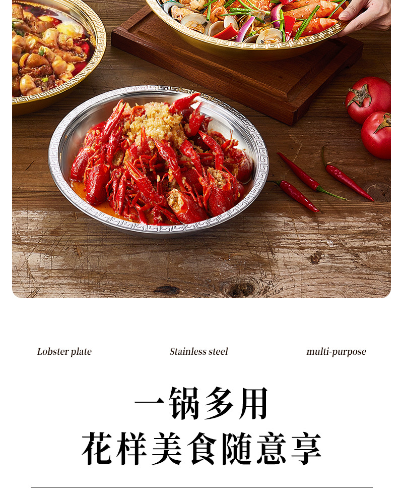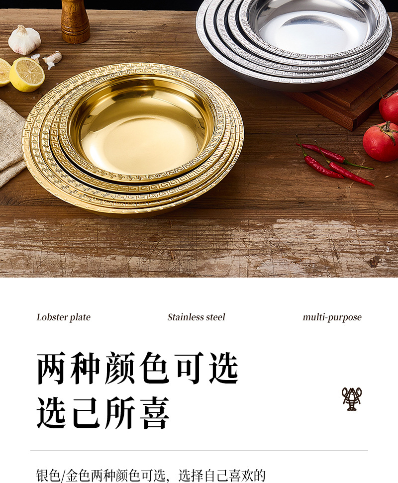 상업용 스테인레스 스틸 랍스터 플레이트 크로스 보더 한국식 황금 디너 플레이트 레스토랑 호텔 랍스터 해산물 바베큐 다목적 플레이트