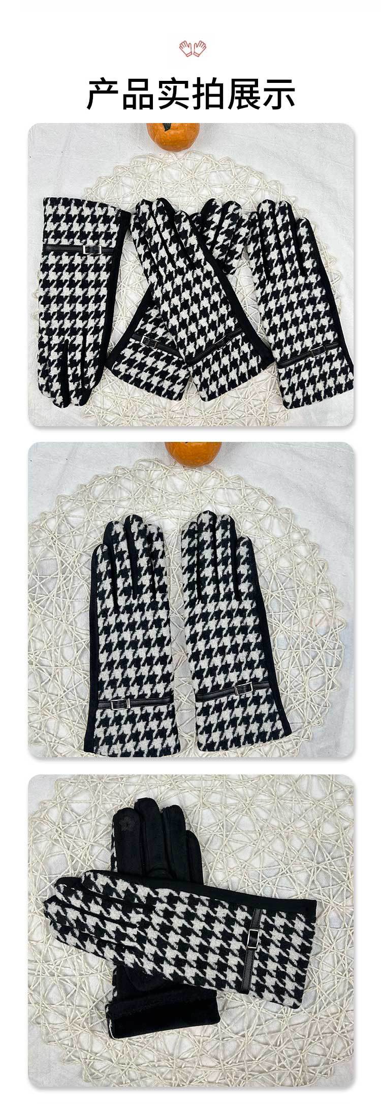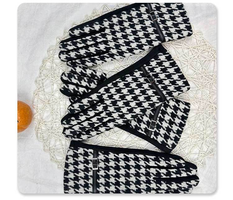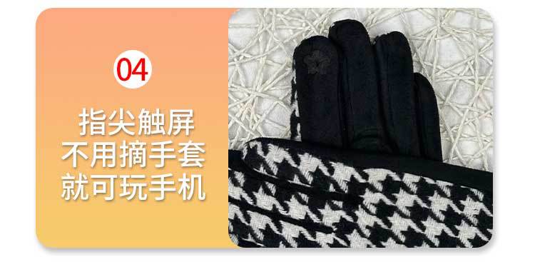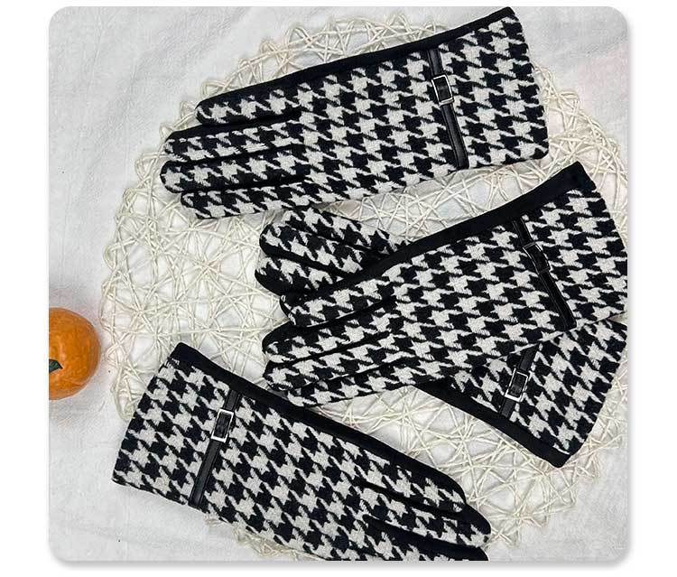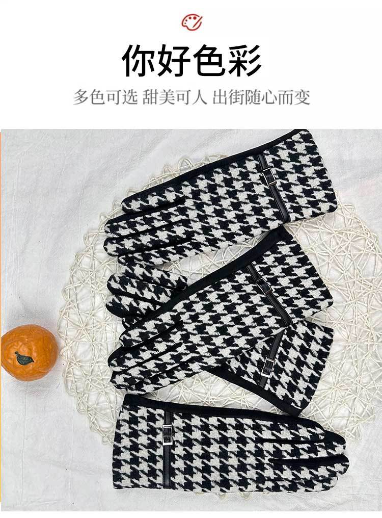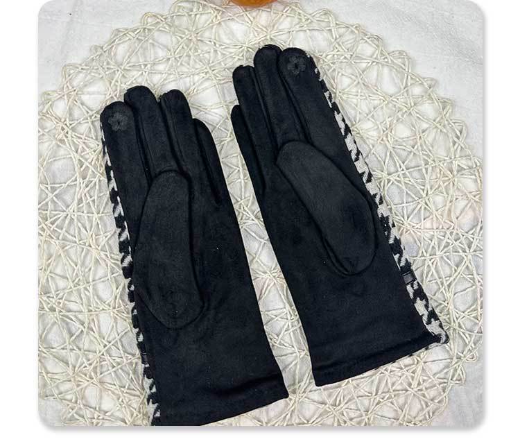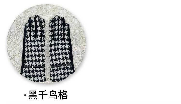 일본 유행 가을 겨울 소녀 검은 물떼새 격자 무늬 장갑, 우아하고 고급스러운 사슴 가죽 벨벳 터치 스크린 다섯 손가락 장갑