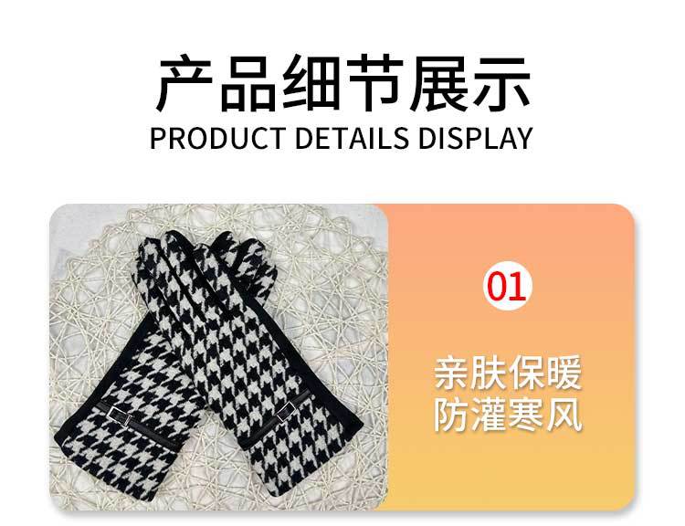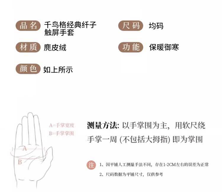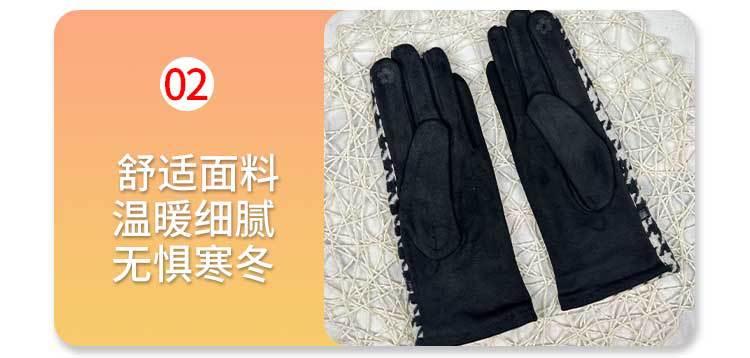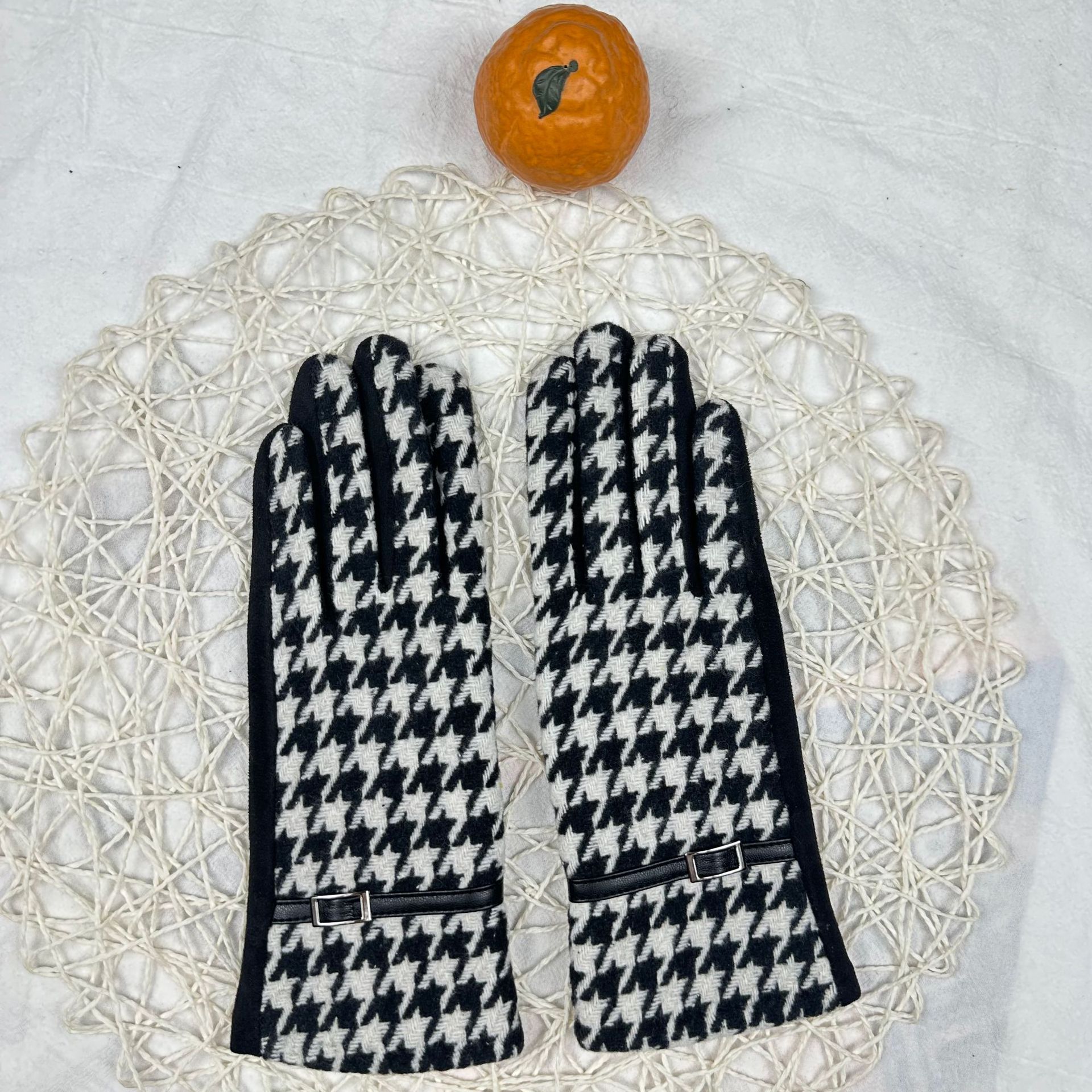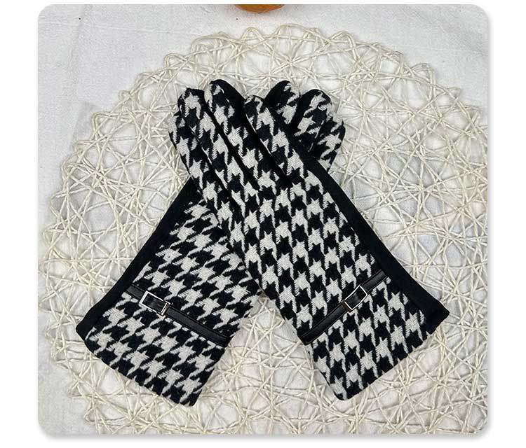 일본 유행 가을 겨울 소녀 검은 물떼새 격자 무늬 장갑, 우아하고 고급스러운 사슴 가죽 벨벳 터치 스크린 다섯 손가락 장갑