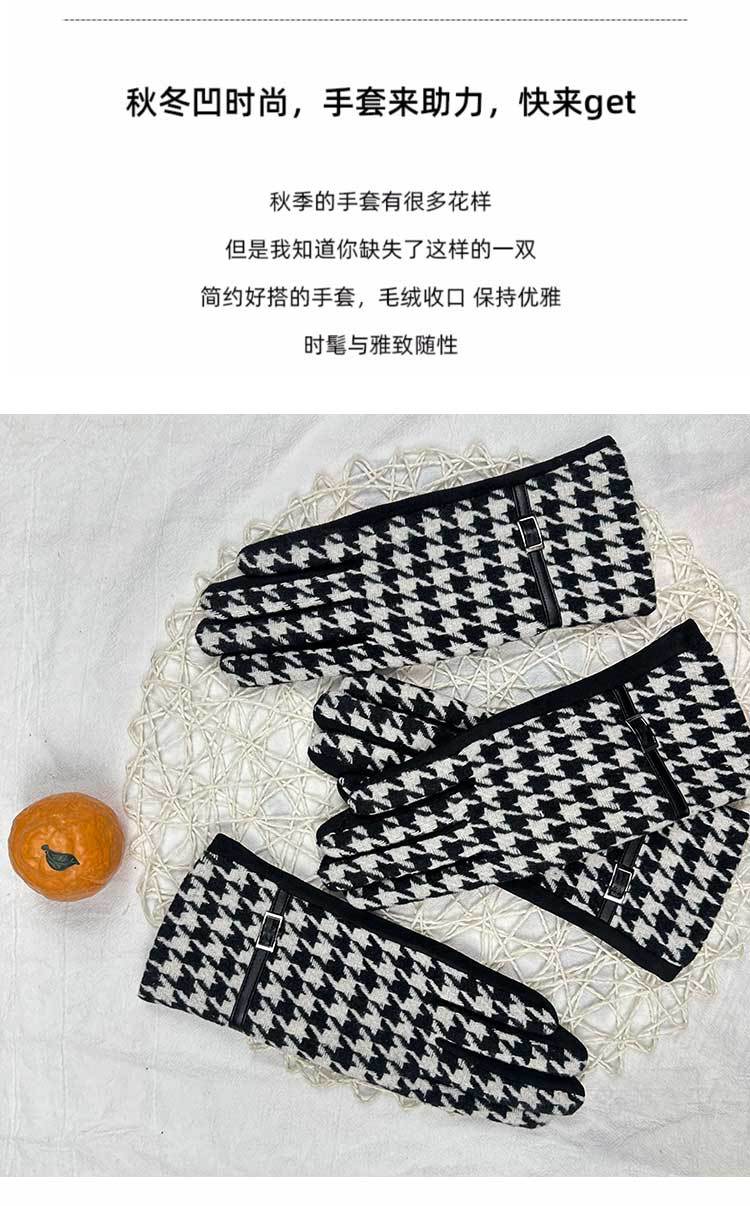 일본 유행 가을 겨울 소녀 검은 물떼새 격자 무늬 장갑, 우아하고 고급스러운 사슴 가죽 벨벳 터치 스크린 다섯 손가락 장갑스토어 가기