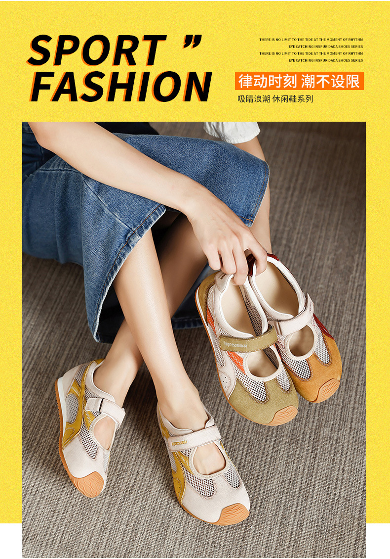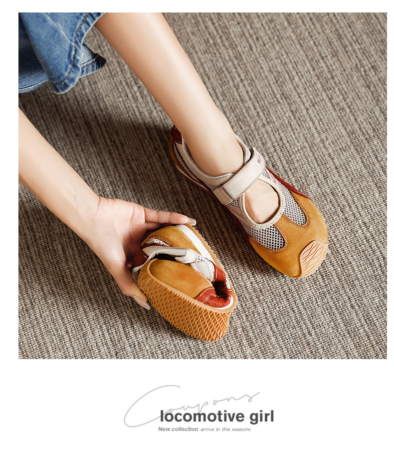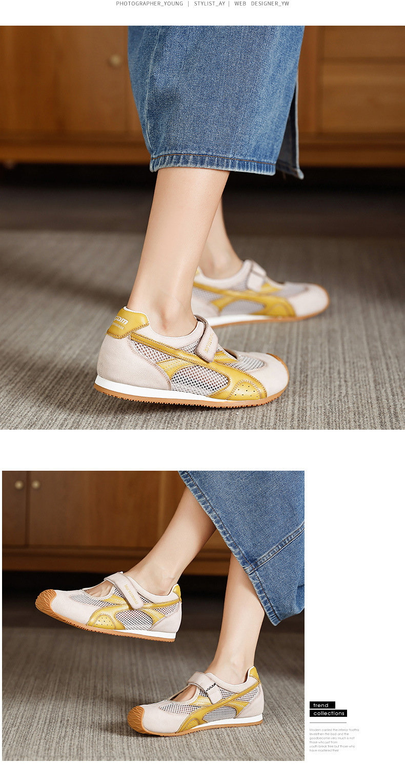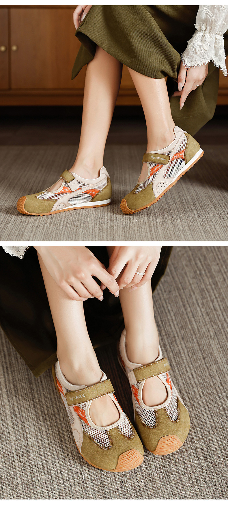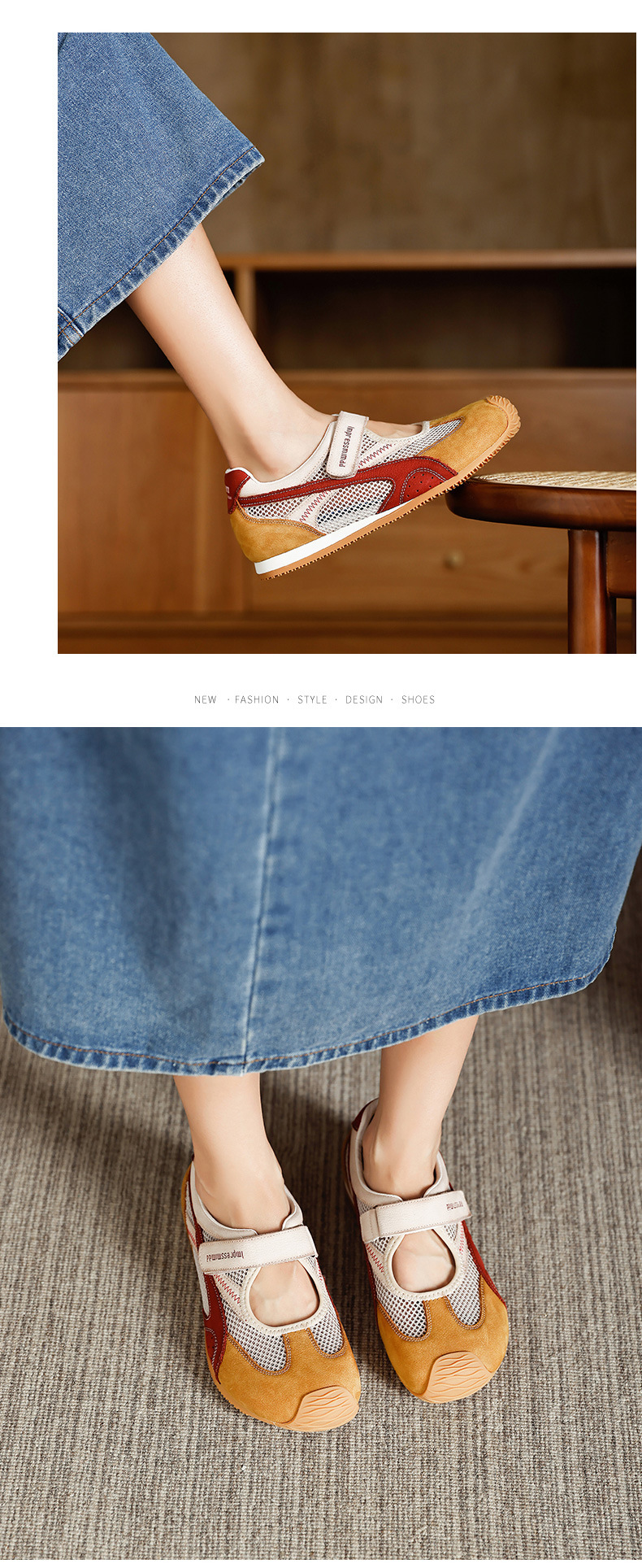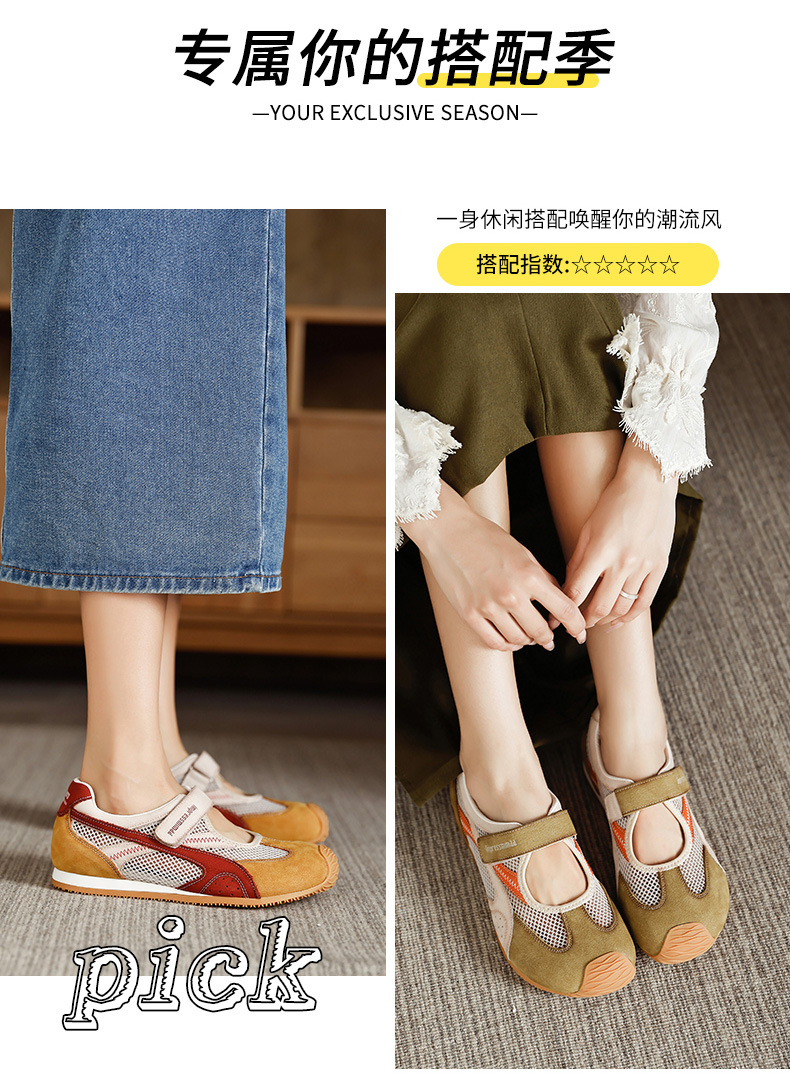 봄과 여름 2025 정품 가죽 메쉬 통기성 메리 제인 신발 여성 한국식 올매치 할로우 아웃 캐주얼 운동화 발레 슈즈스토어 가기