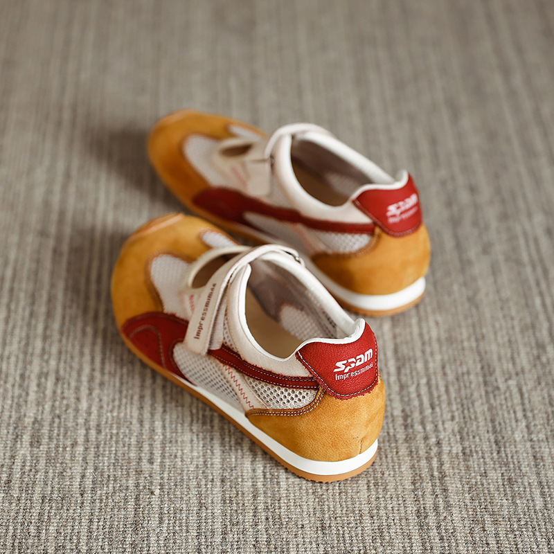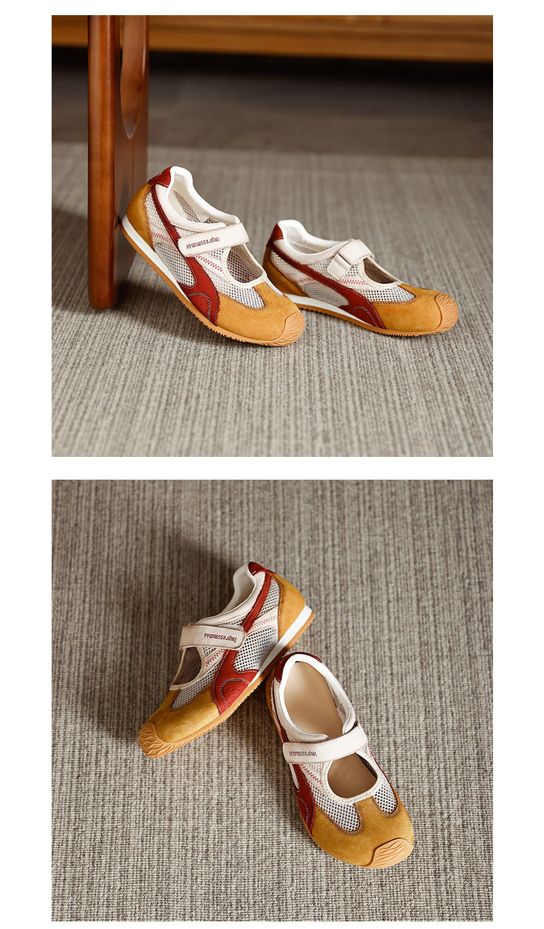 봄과 여름 2025 정품 가죽 메쉬 통기성 메리 제인 신발 여성 한국식 올매치 할로우 아웃 캐주얼 운동화 발레 슈즈