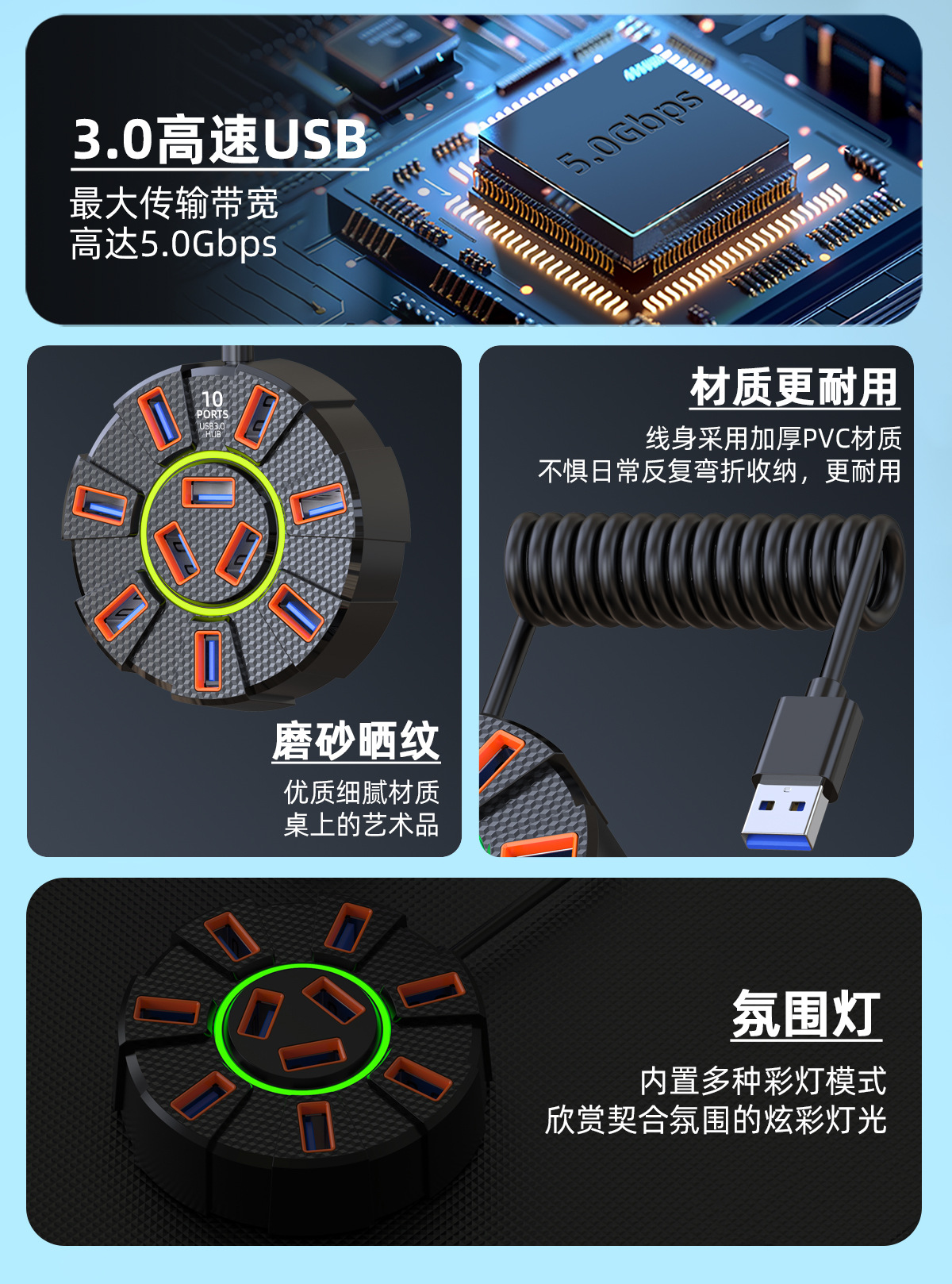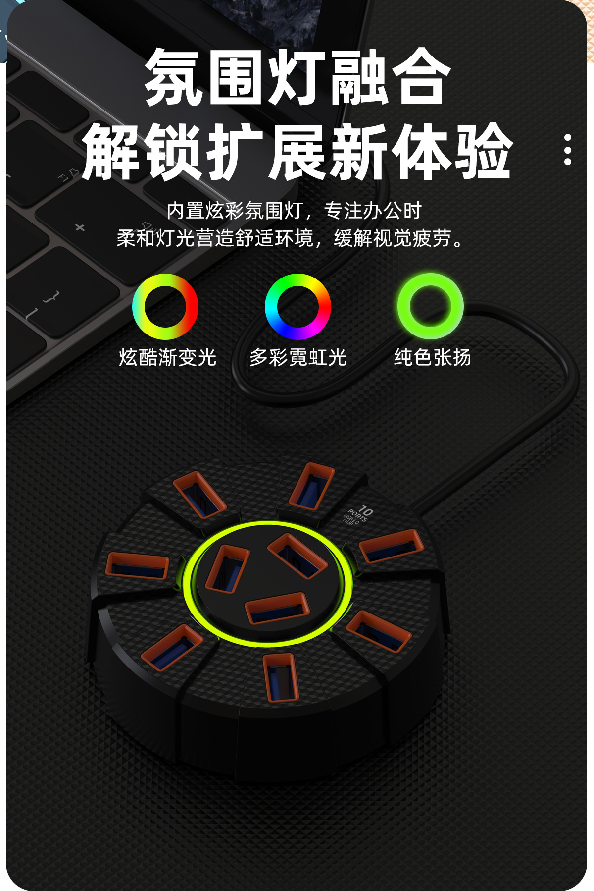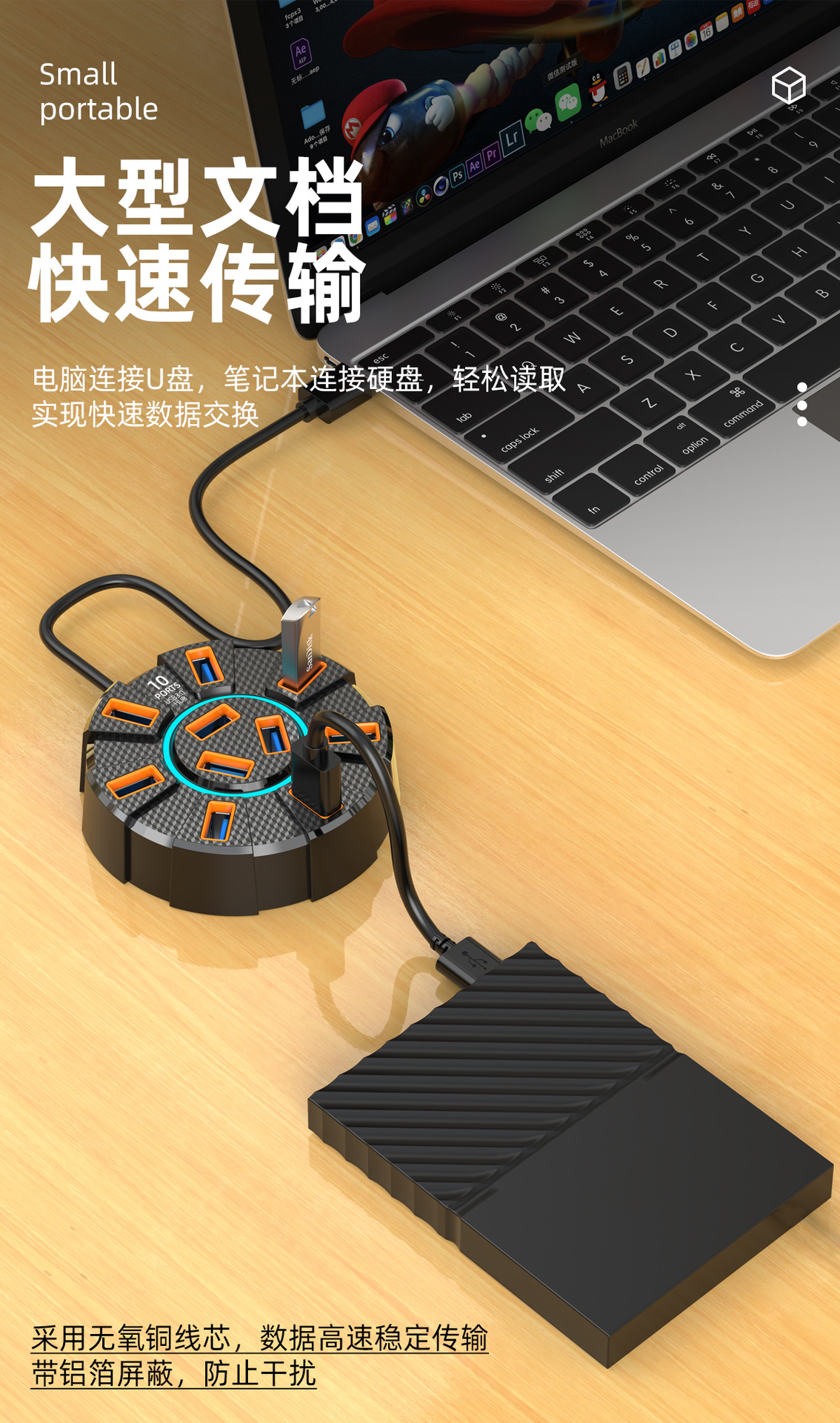 USB3.0hub 허브 멀티 포트 확장(주변 조명 포함)은 컴퓨터 노트북 등과 완벽하게 호환됩니다.