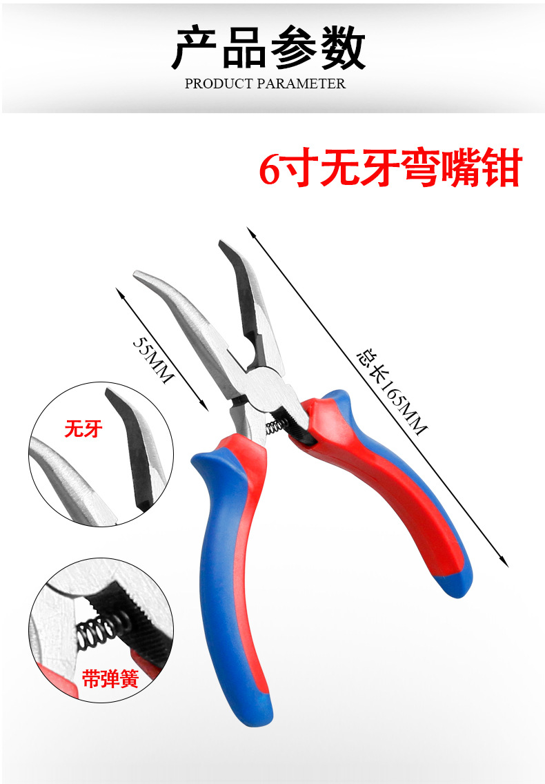 • 6inch 스프링이 있는 곡선 노즈 플라이어 [이빨 없음]
