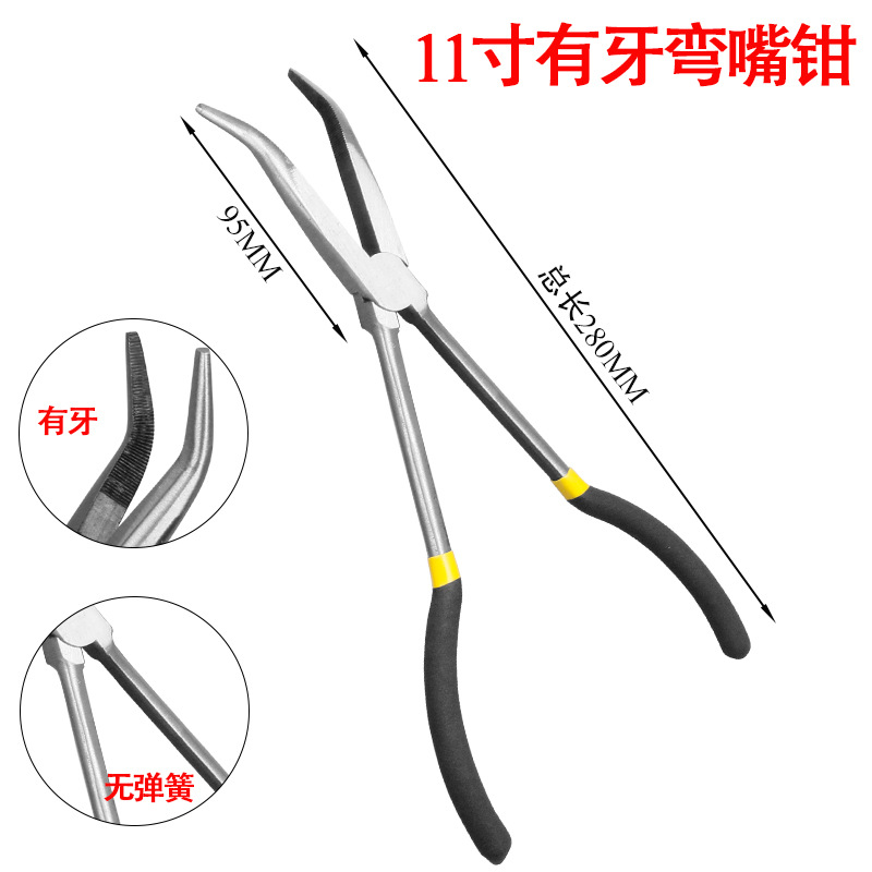 • 스프링이 없는 11인치 90도 곡선 노즈 플라이어 [이빨 포함]