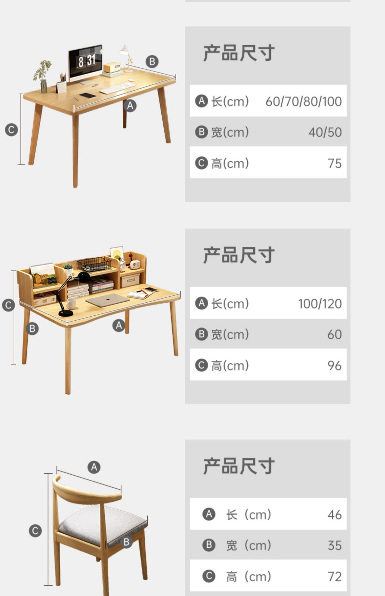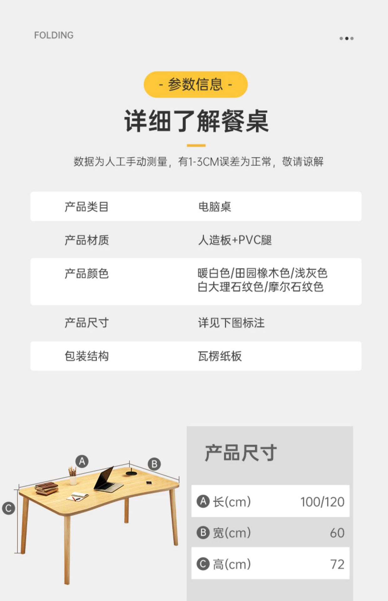 • (테이블과 의자 조합이 더 유리합니다) 따뜻한 흰색 100*60*72cm