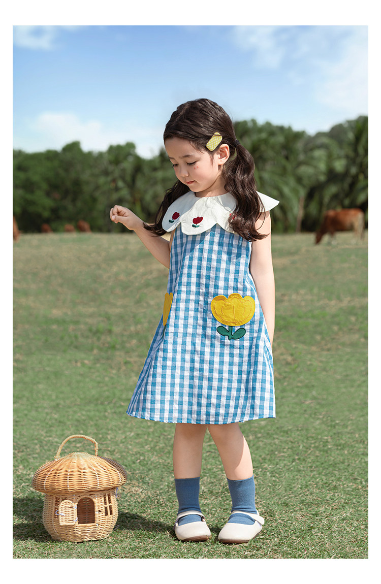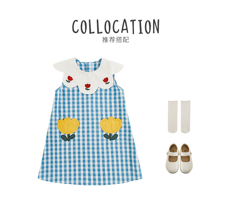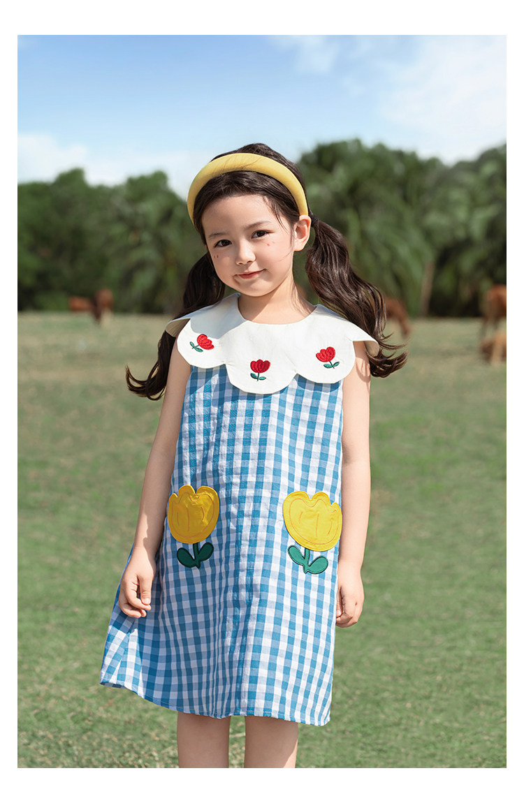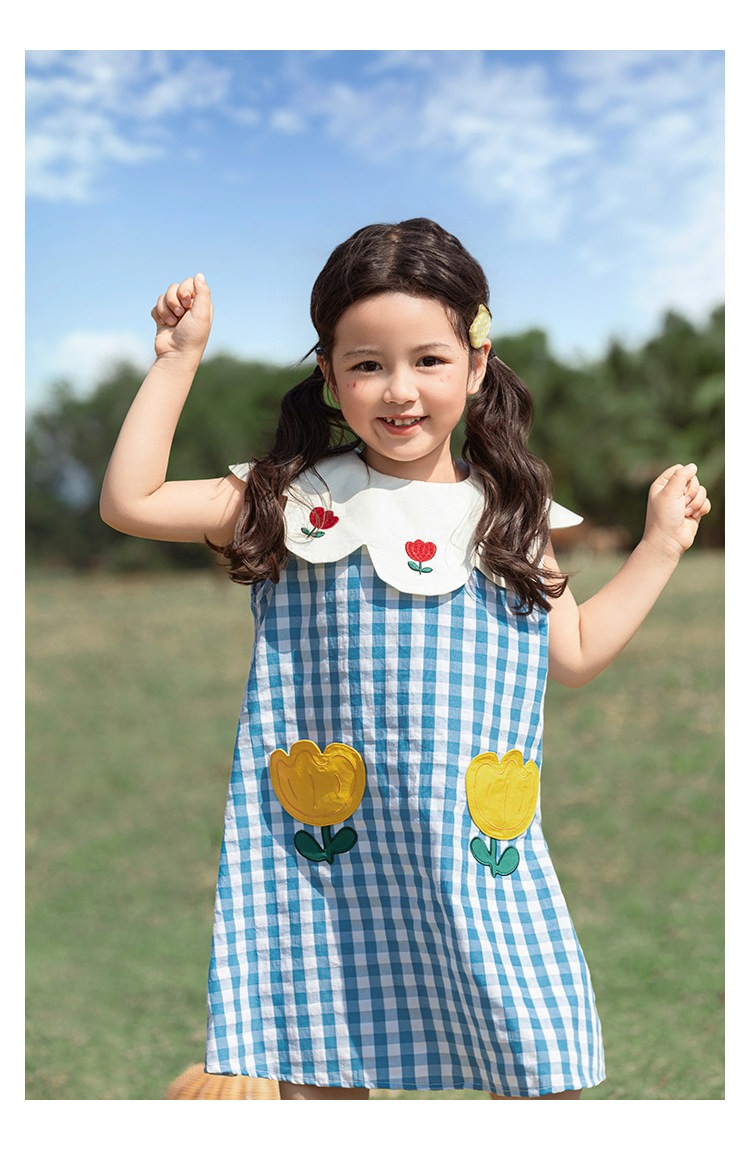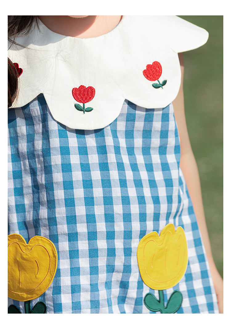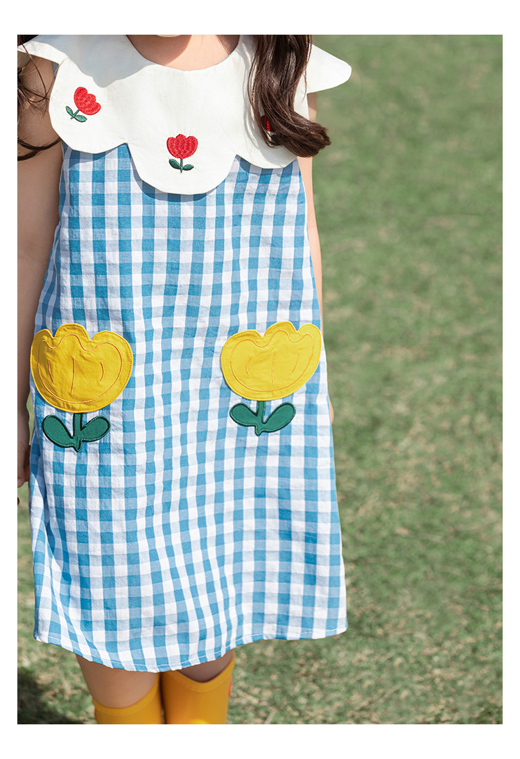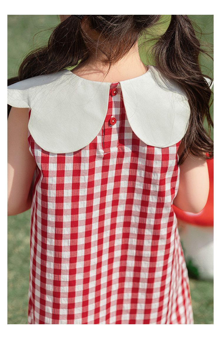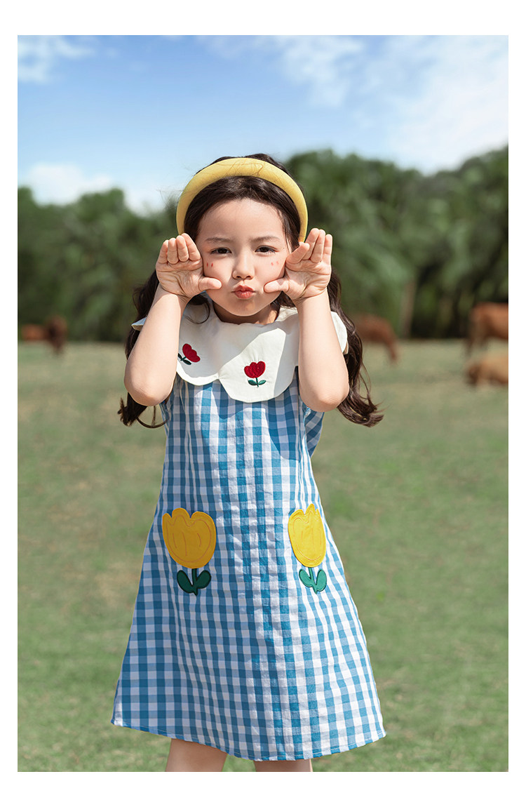 Wulibuyi 소녀의 대비 색상 레이스 인형 옷깃 드레스 여름 신선하고 아름다운 원사 염색 격자 무늬 스커트 유행스토어 가기