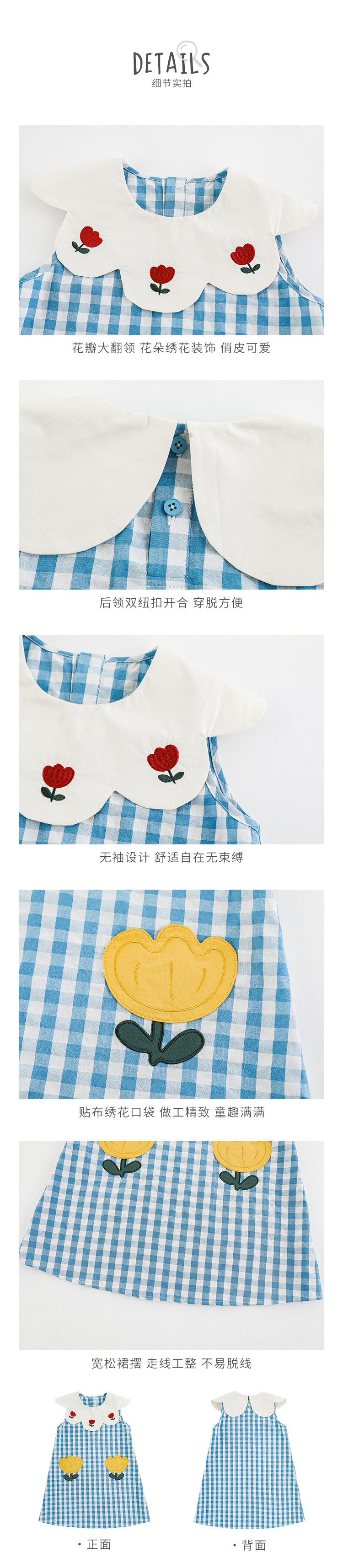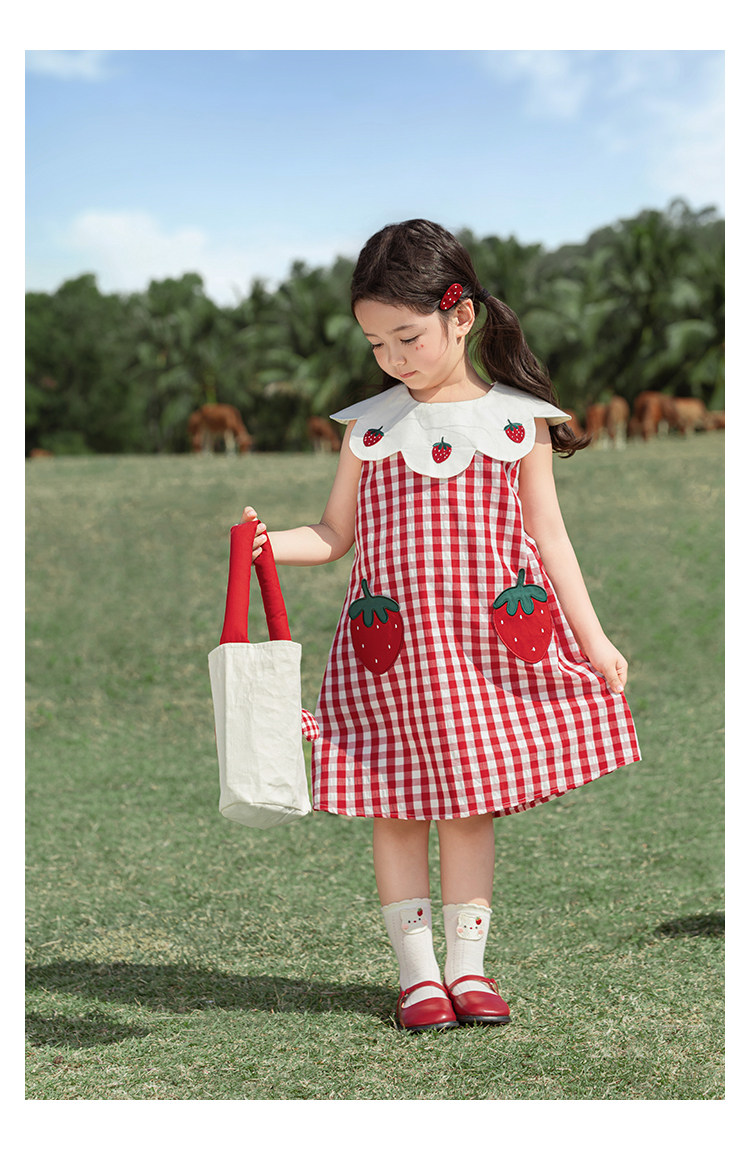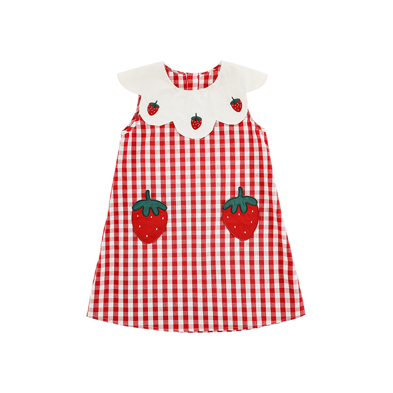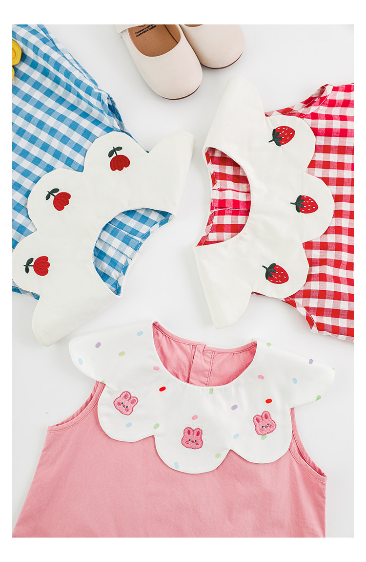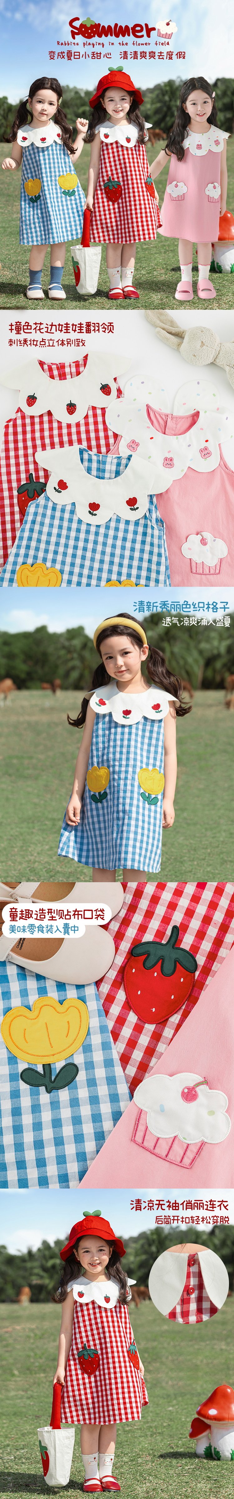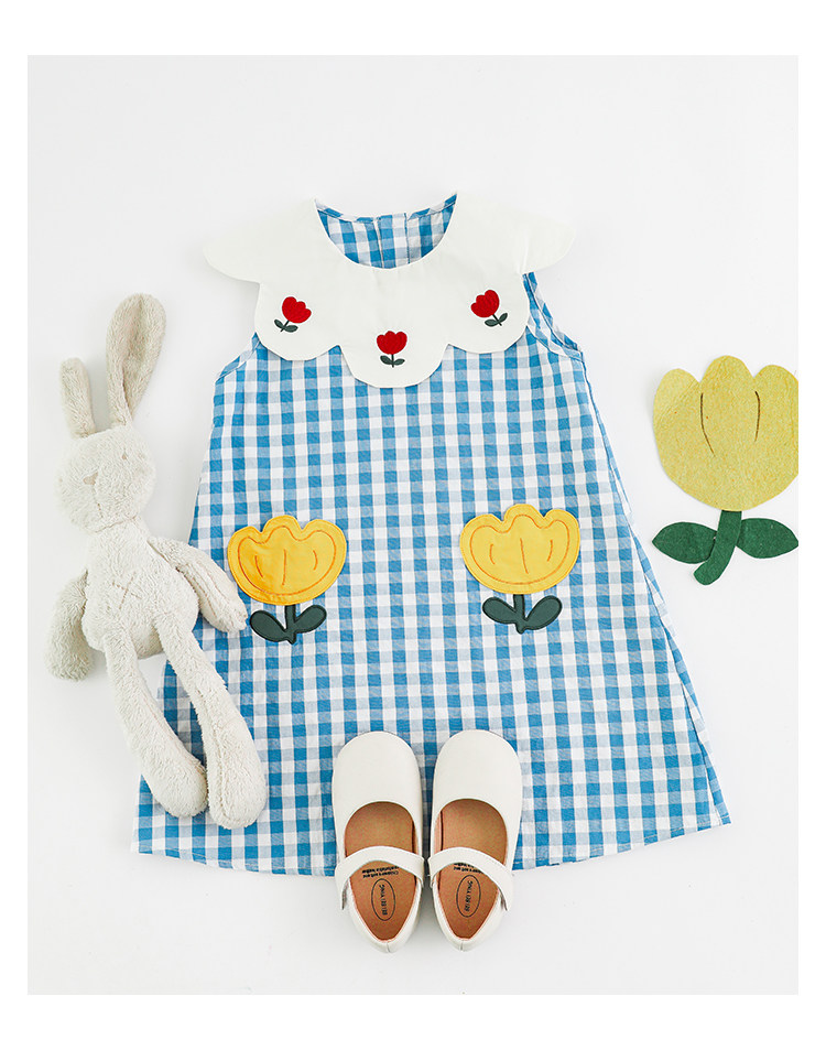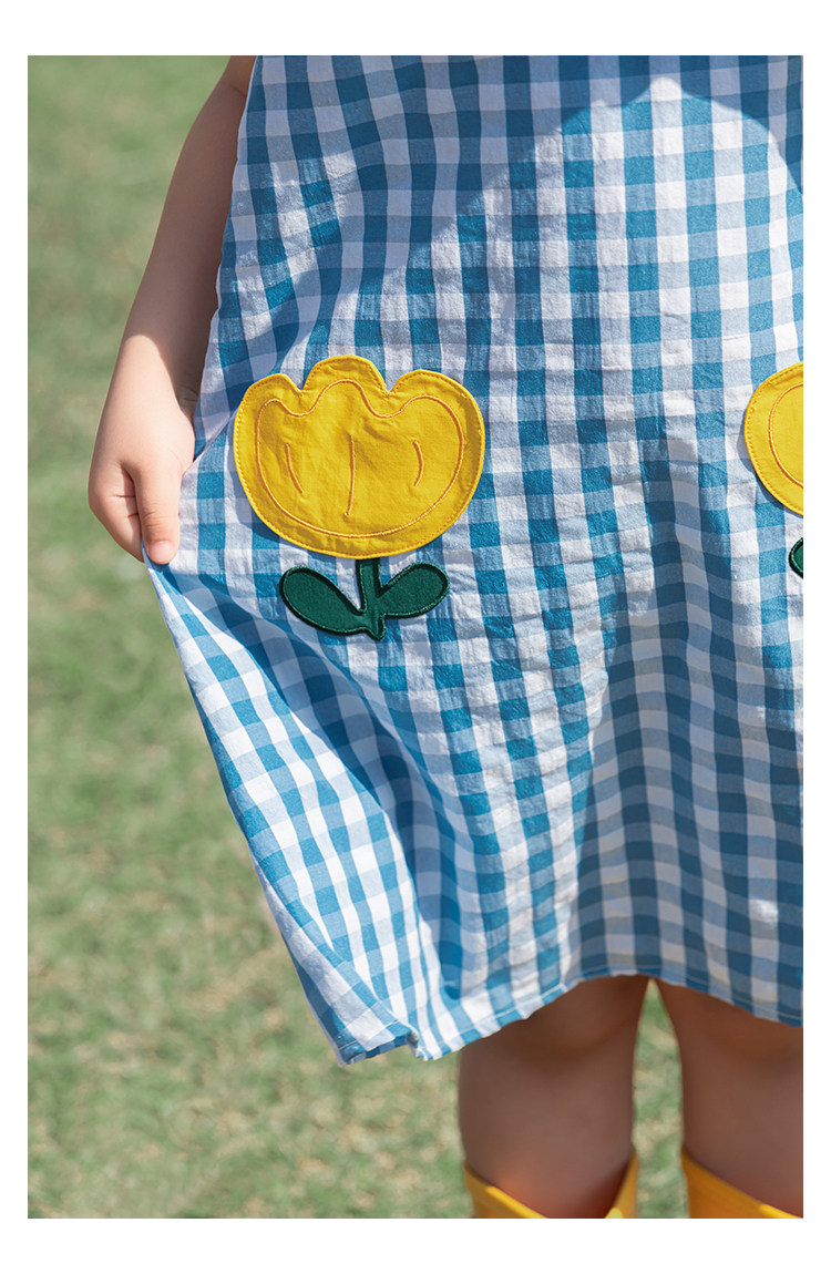 Wulibuyi 소녀의 대비 색상 레이스 인형 옷깃 드레스 여름 신선하고 아름다운 원사 염색 격자 무늬 스커트 유행스토어 가기