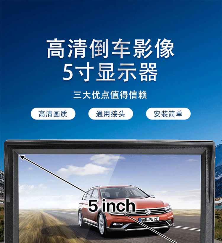 휴대용 접이식 헤드업 고화질 5inch 자동차 모니터 흡입 컵 데스크탑 이중 목적 반전 이미지 모니터링 디스플레이