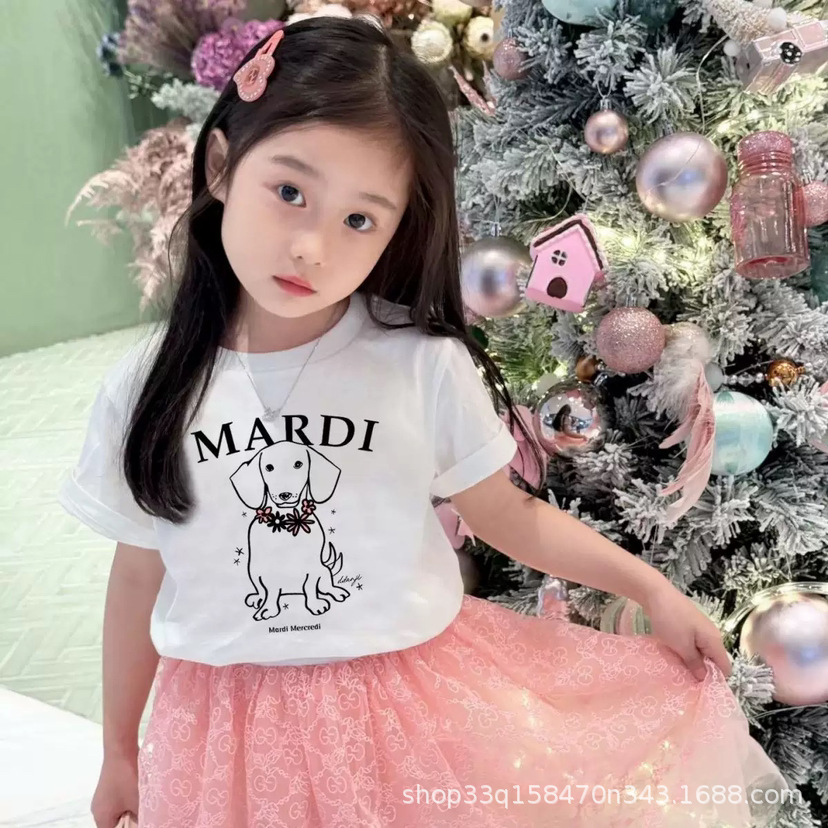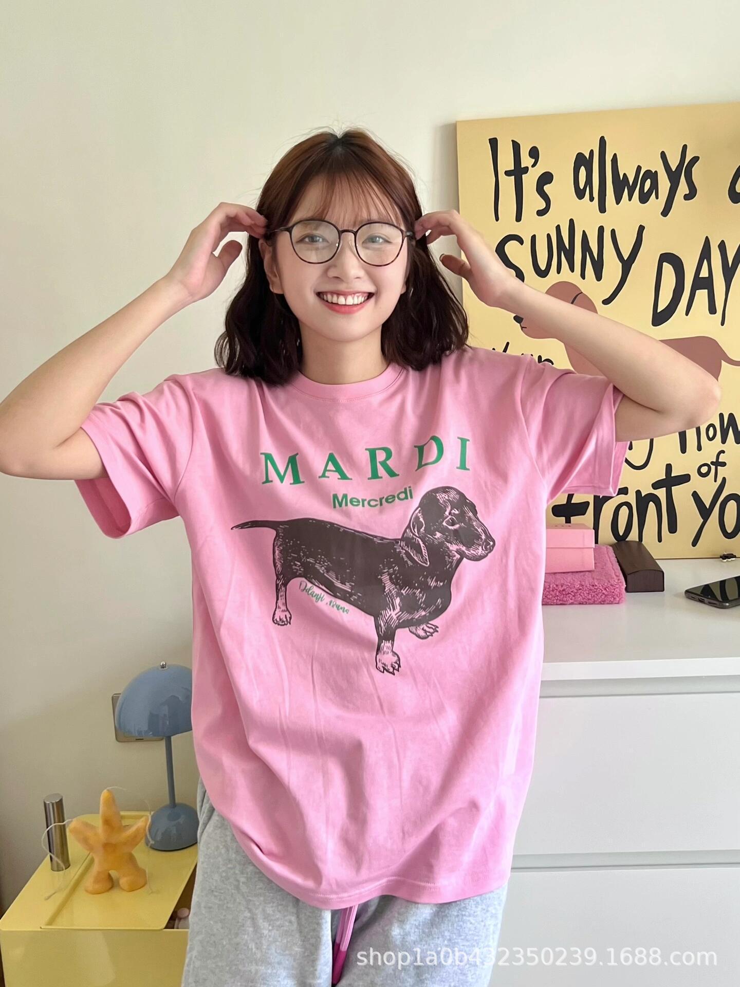 장기면 어린이 T 사이즈 한국 마디 반팔 여성 여름 리틀 데이지 닥스 훈트 플로럴 프린트 탑스토어 가기