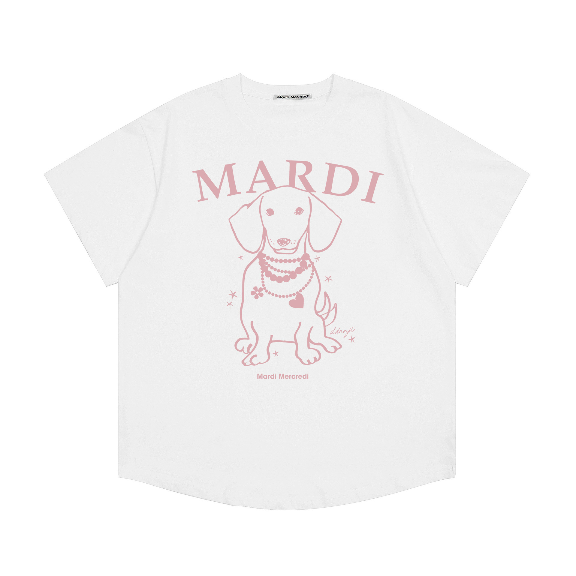 장기면 어린이 T 사이즈 한국 마디 반팔 여성 여름 리틀 데이지 닥스 훈트 플로럴 프린트 탑